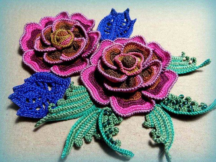 - Объемная Ирландская роза. Эффектные выпуклые цветки в виде центрального элемента изделия.