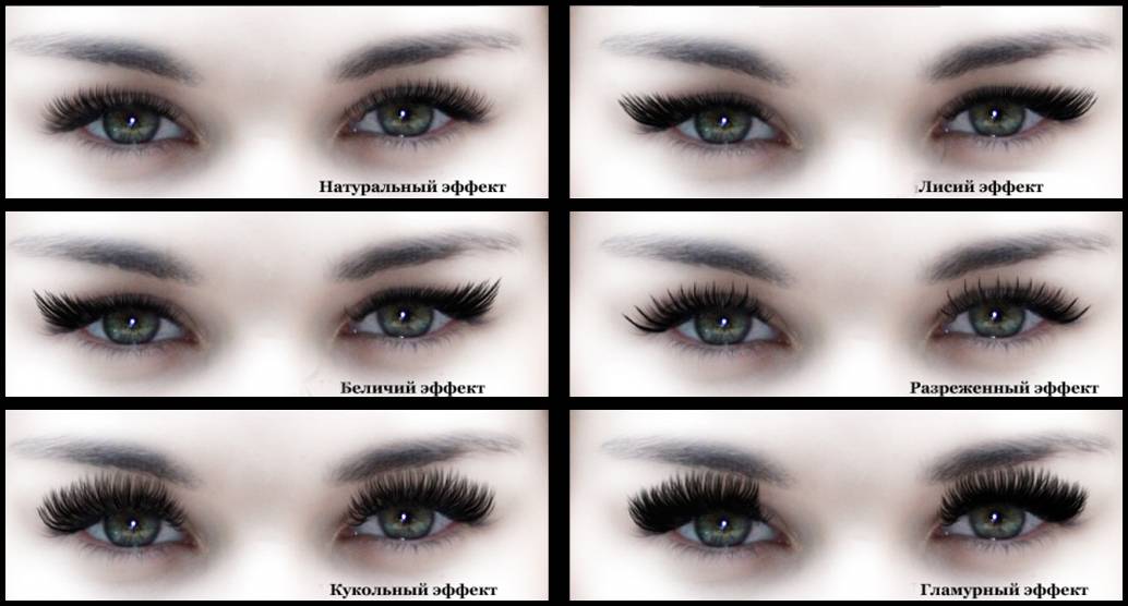 Методика поресничного наращивания позволяет создавать разные эффекты. Основные разновидности наращивания: