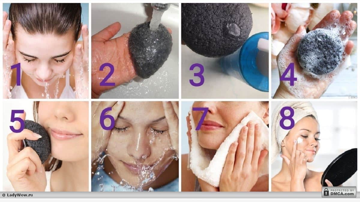 Умывание спонжем конняку пошагово