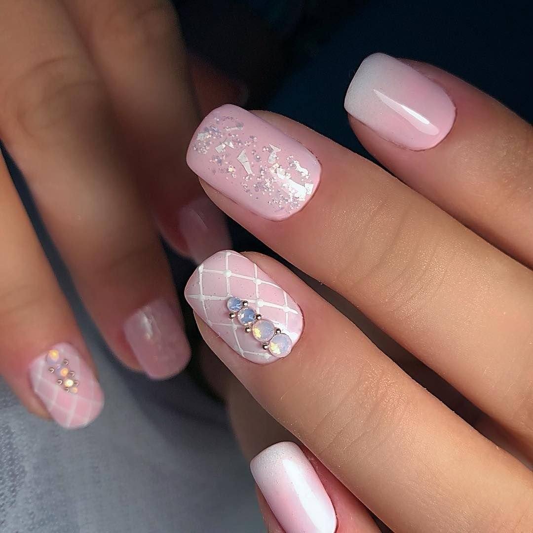 Идеи розового маникюра с серебром или золотом