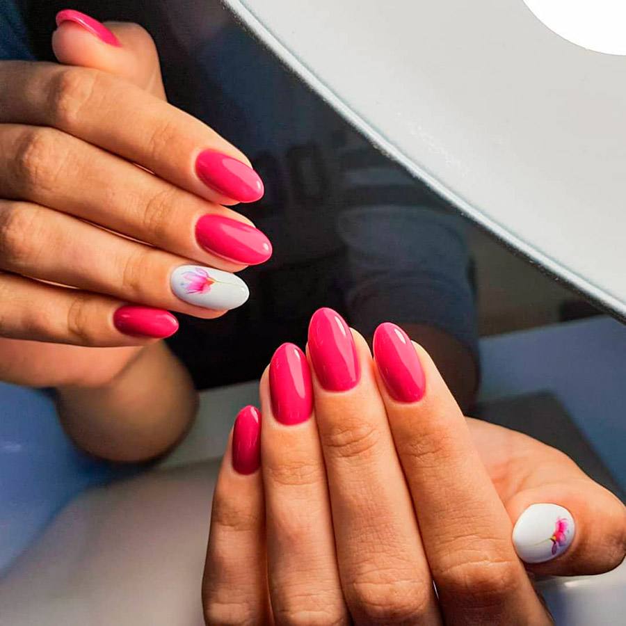 Фуксия – один из самых чувственных оттенков розового. С маникюром такого цвета неизменно приходят в голову мысли о романтике. Это отличный вариант маникюра для долгожданного свидания.