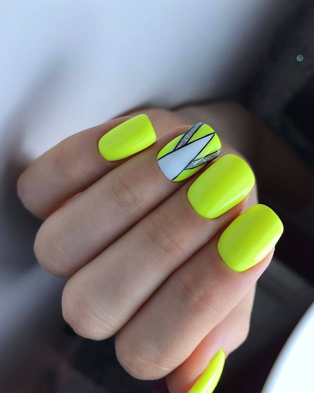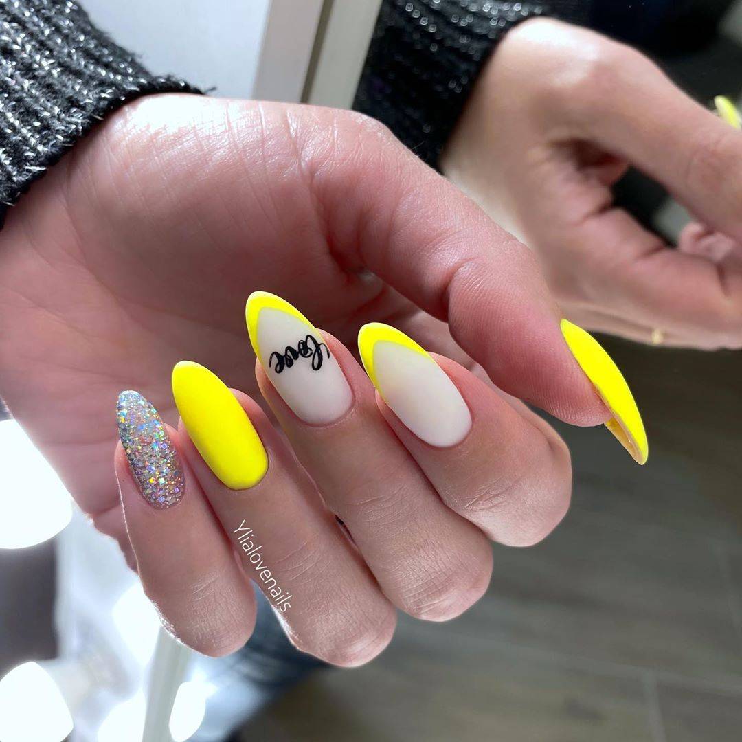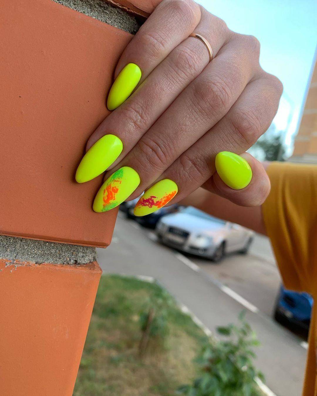 #1 Желтый неоновый маникюр