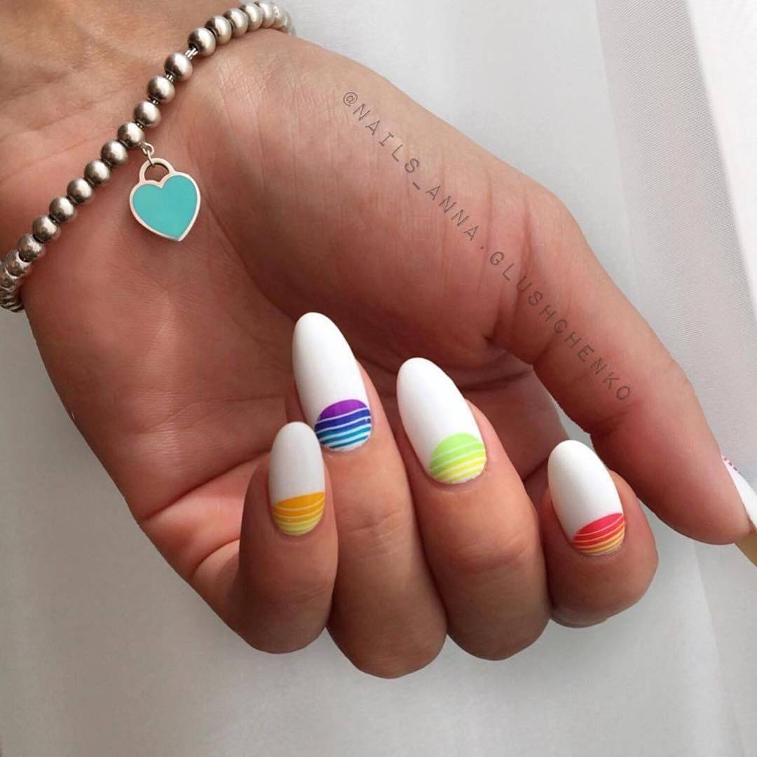 Обратите внимание, что цвет лунки можно менять на разных ногтях.