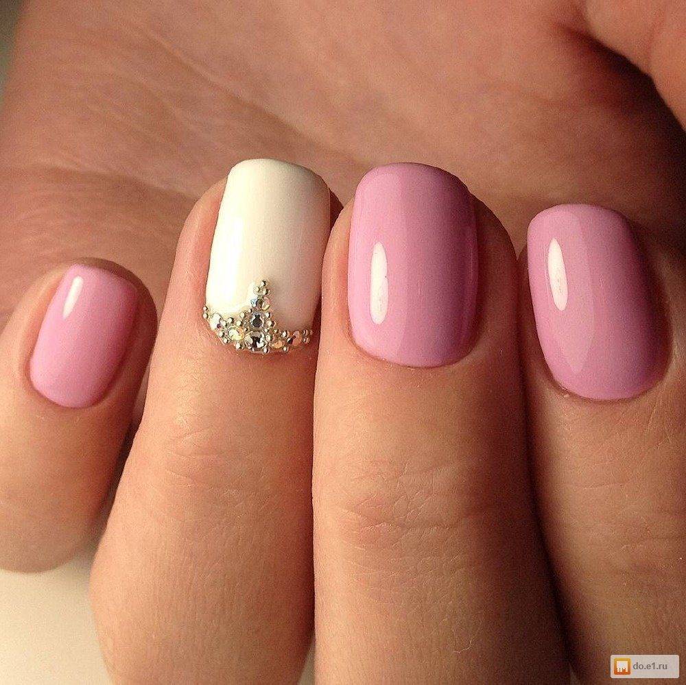 Розовый маникюр с серебром или золотом – отличный вариант для вечернего выхода, новогоднего или свадебного нейл-дизайна.