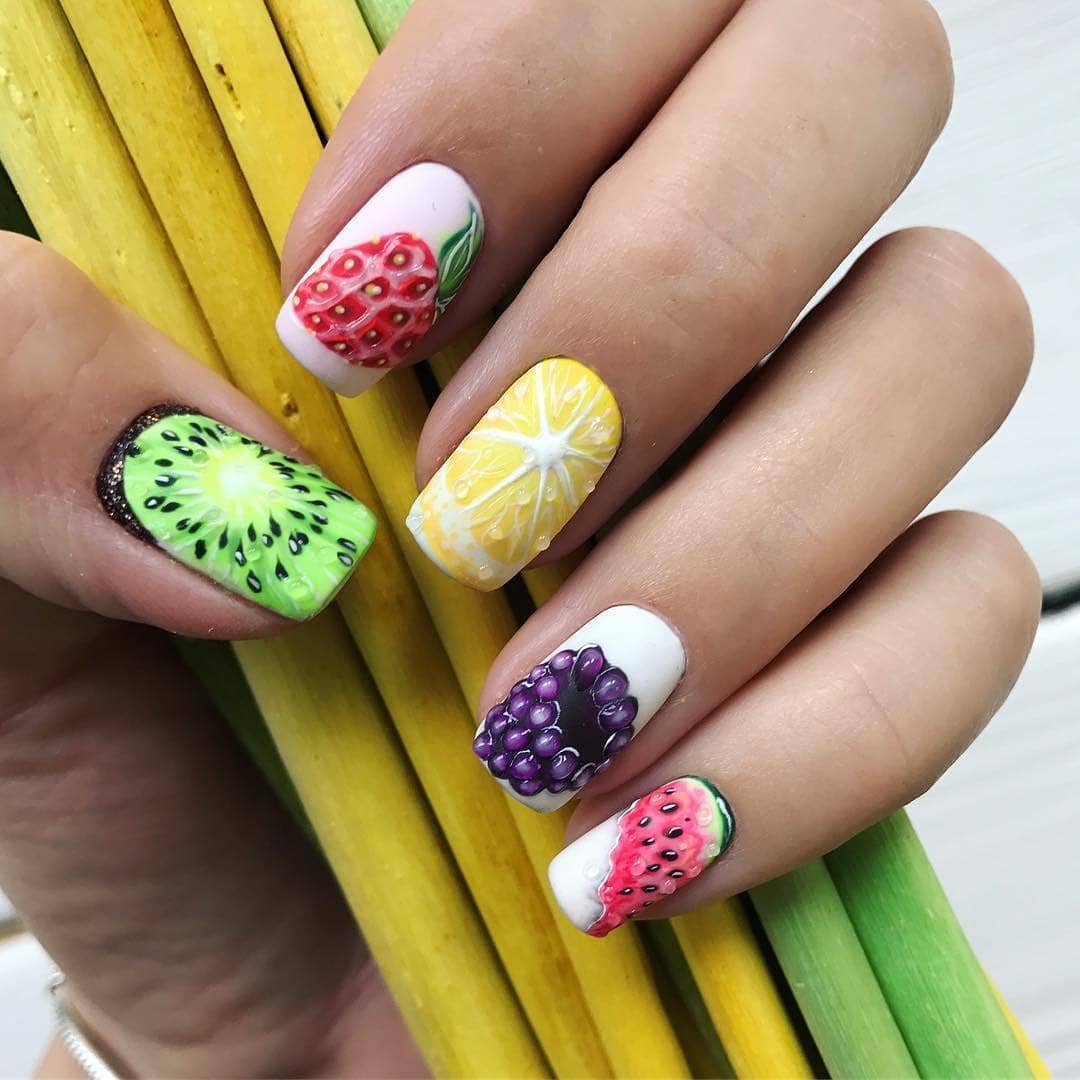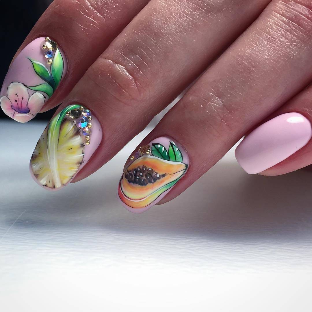 Сочная роспись как никто передает ваше настроение в солнечный день. Яркие фрукты и рисунки с природой вы можете сделать самостоятельно, в домашних условиях. В 2020-2021 году маникюр стал настолько популярен, что практически каждая девушка способна создать картину на ногтях без особых навыков. Благо, это позволяют сделать современные инструменты и приспособления. Не нужно тратить большие деньги в салонах. Ваша фантазия должна полностью отражаться на ваших ногтях!