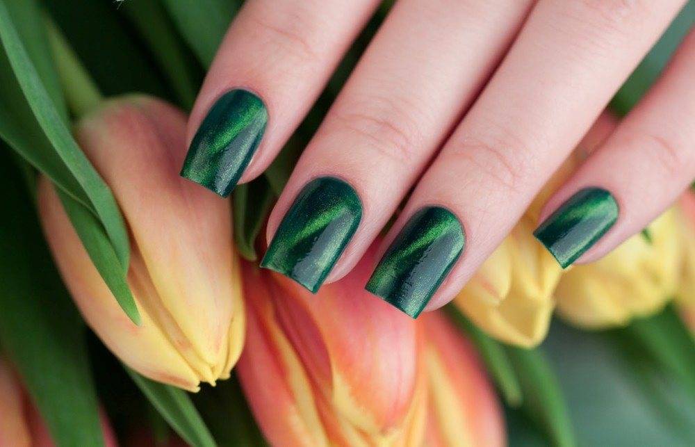 Темно-зеленый оттенок можно смело использовать в маникюре как смуглым красавицам, так и девушкам с бледной, светлой кожей на руках. Этот цвет подойдет и первым, и вторым.