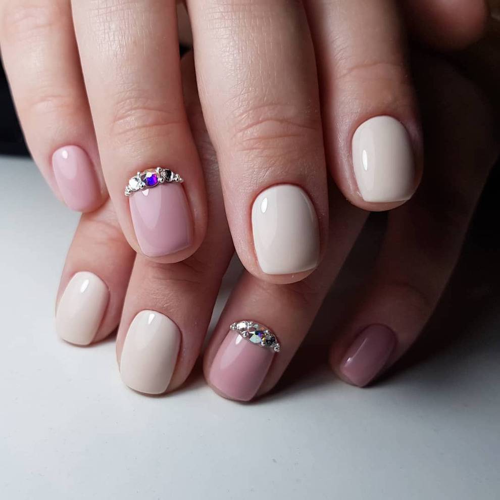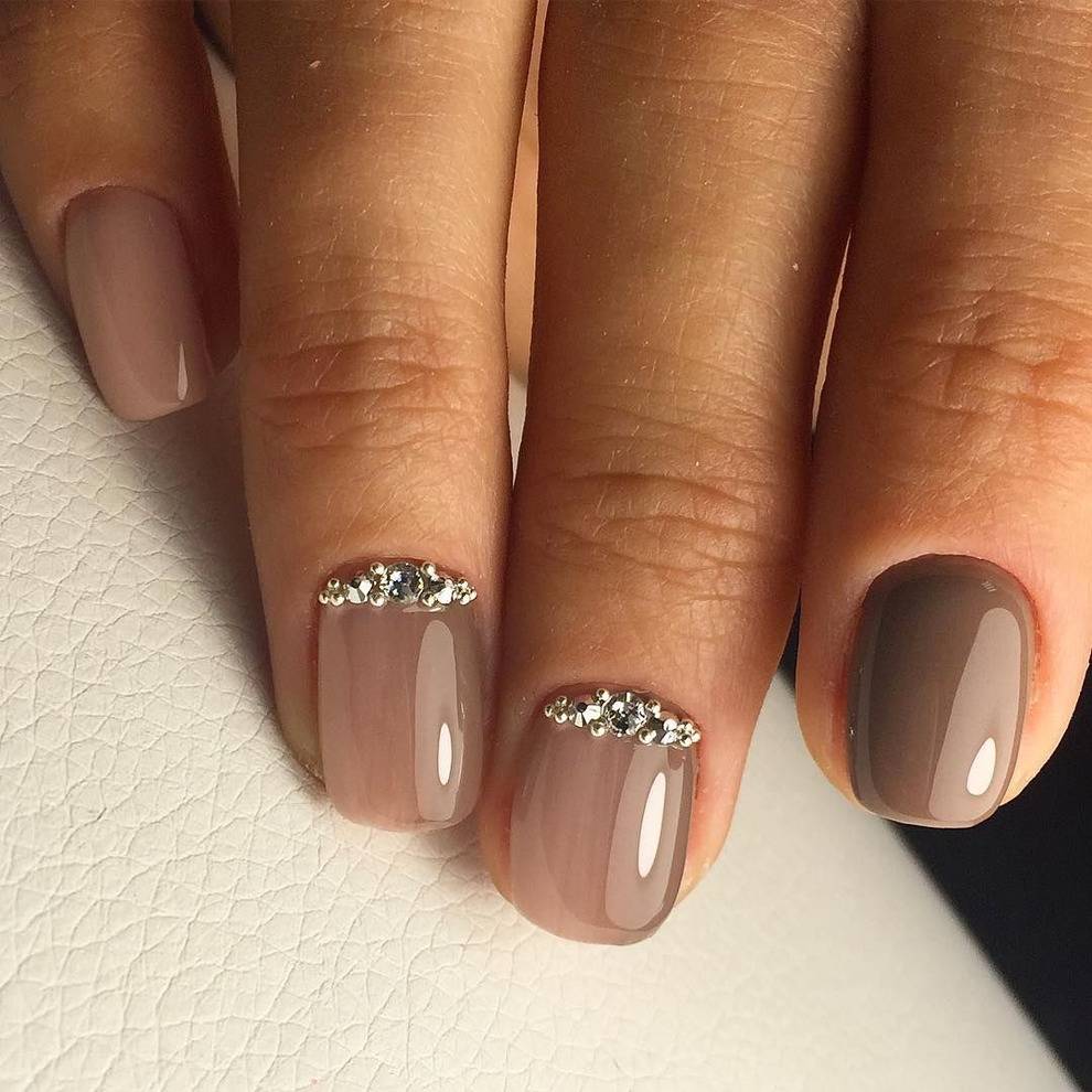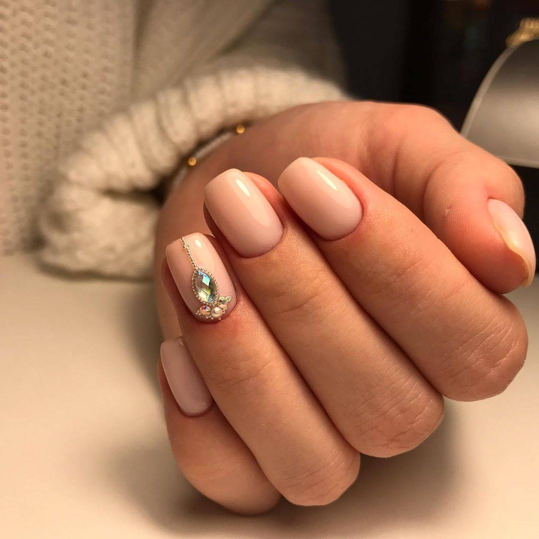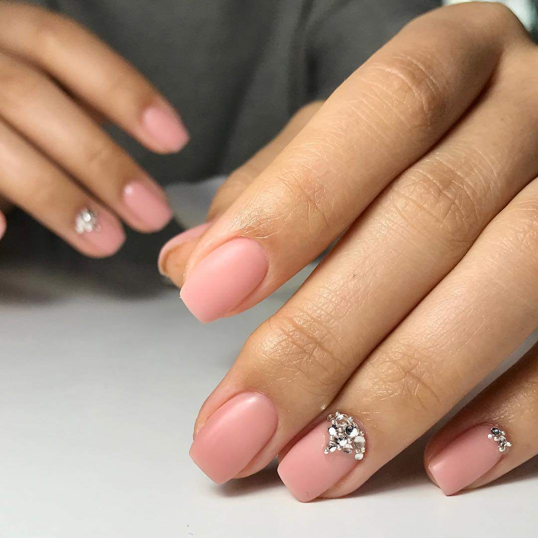 #3 Однотонный маникюр на короткие ногти со стразами 2020