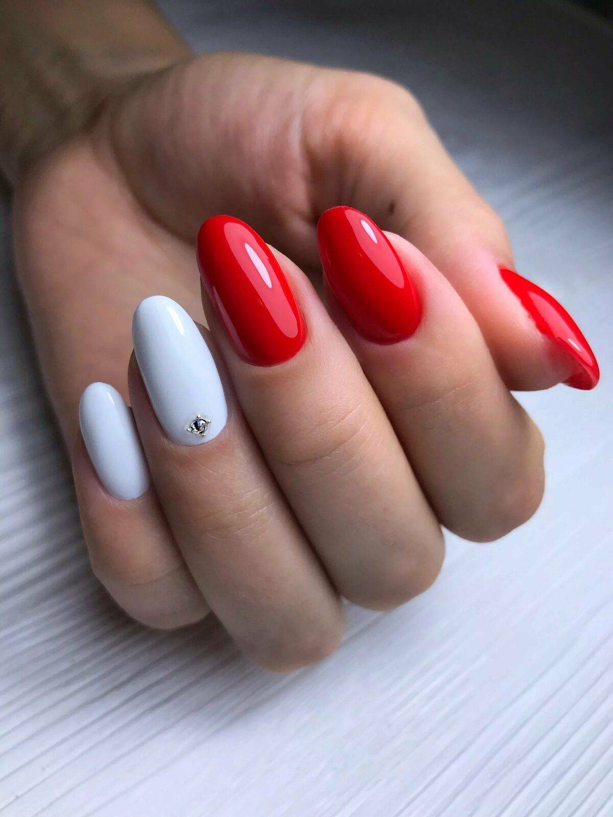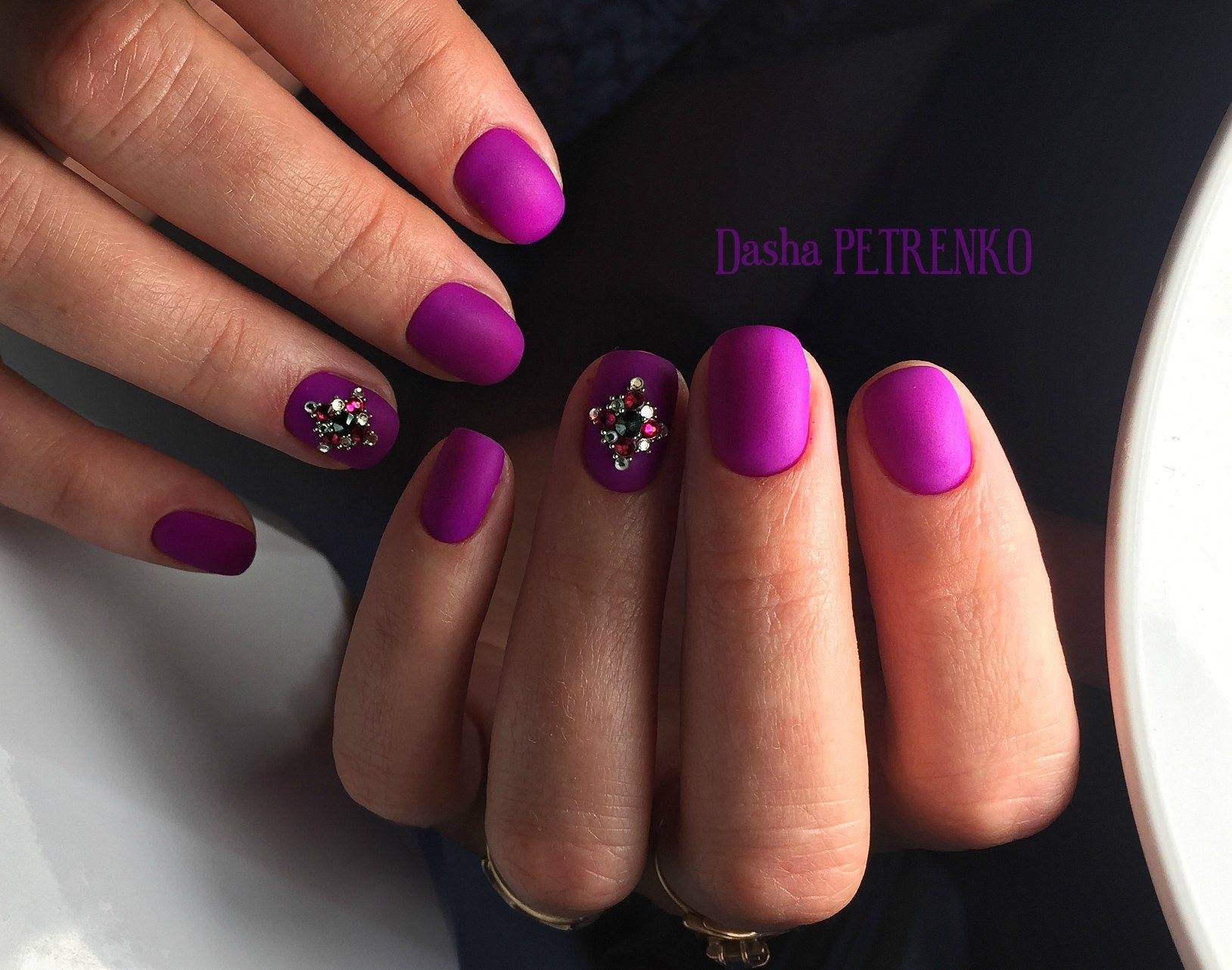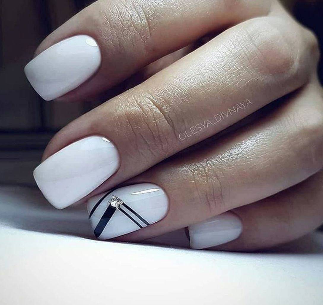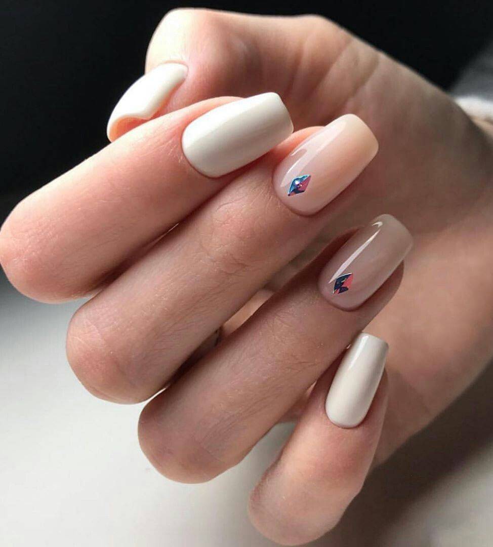 #3 Однотонный маникюр на короткие ногти со стразами 2020