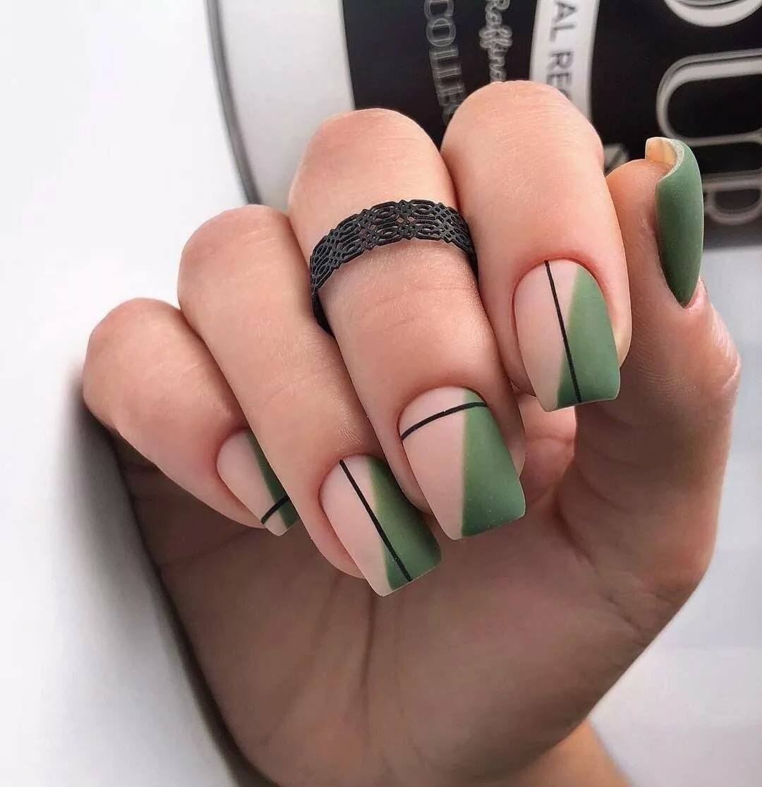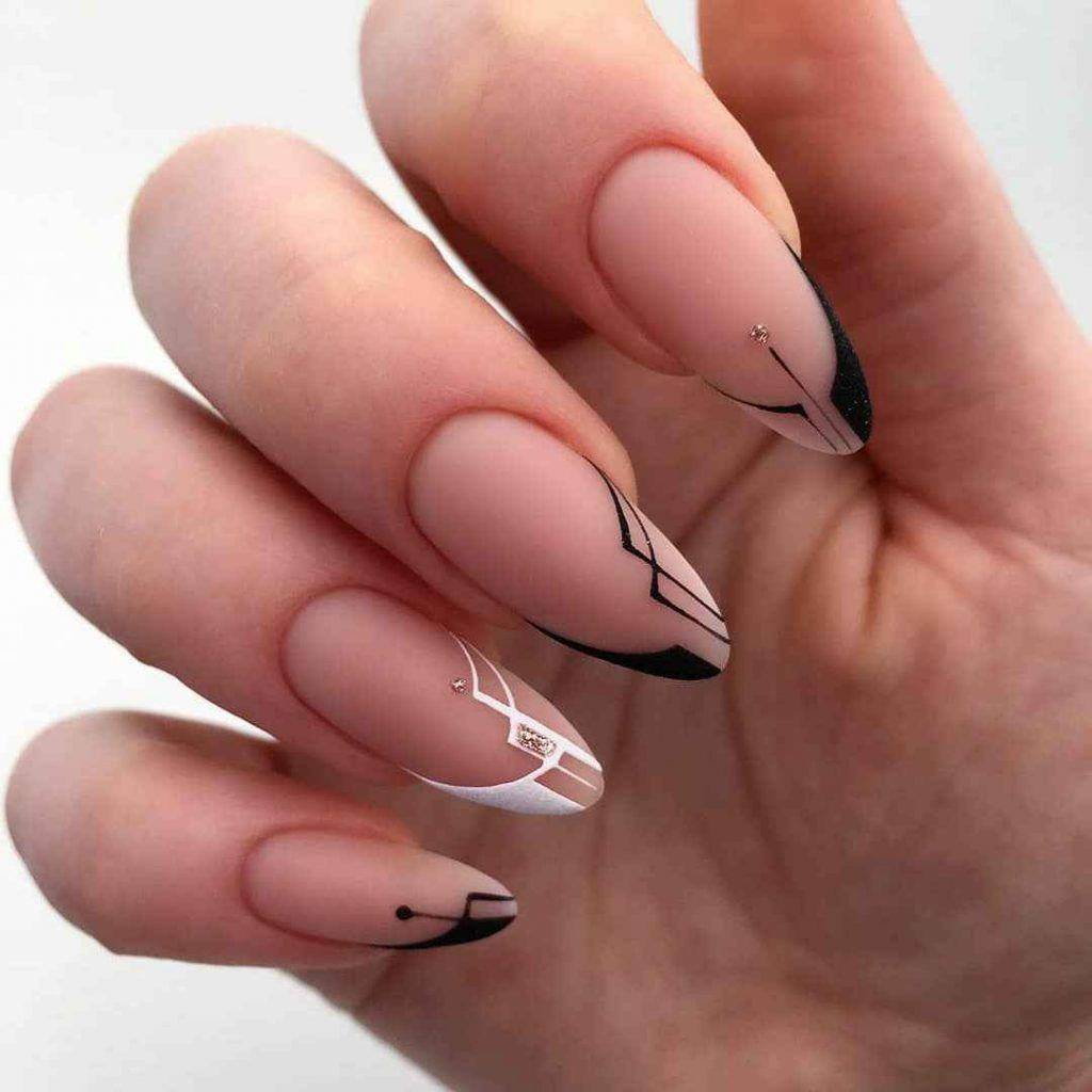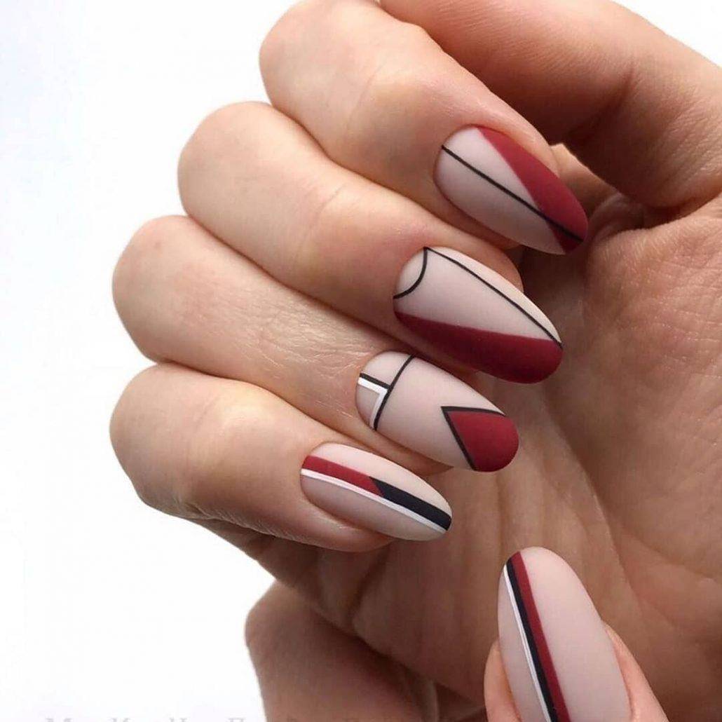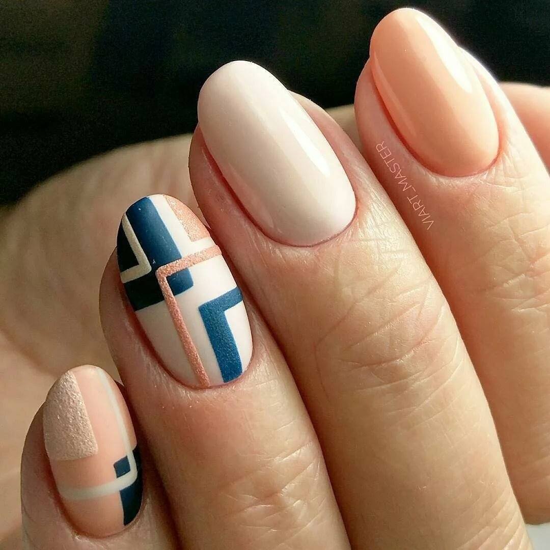 - Геометрический дизайн. Он смотрится лаконично и подойдет для любой длины ногтей.