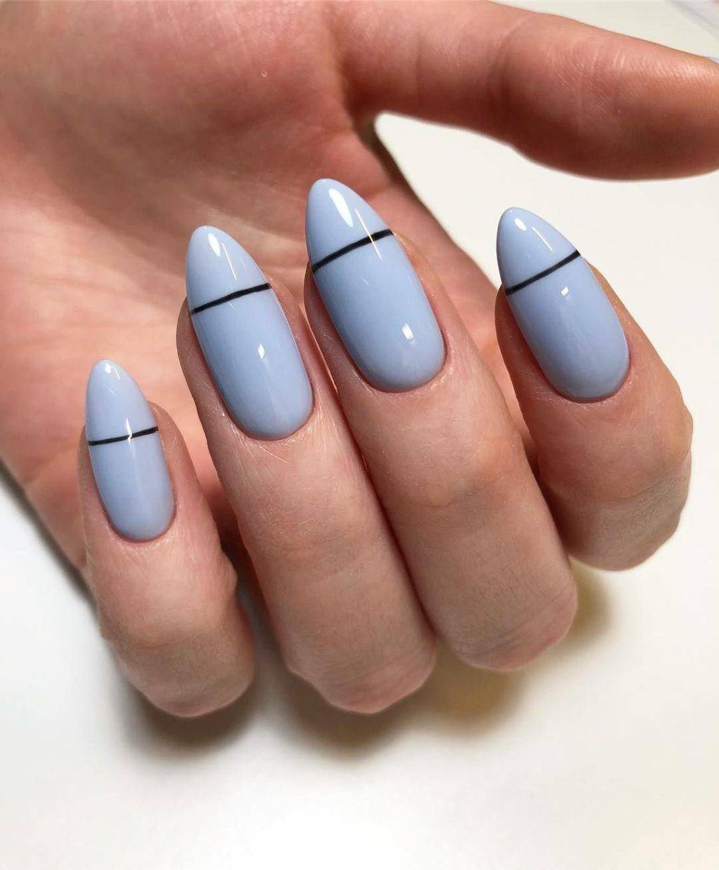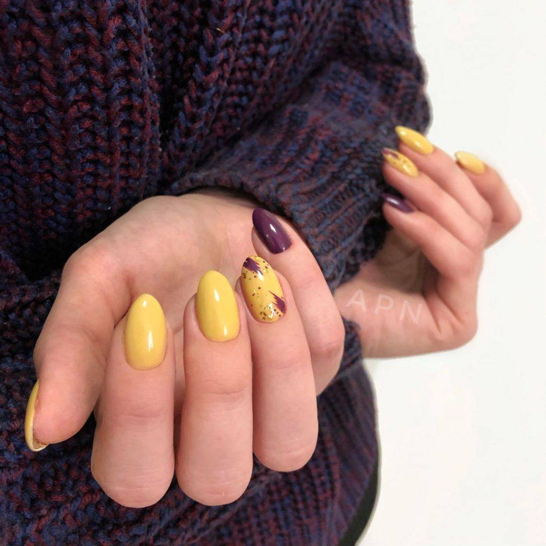В однотонный нейл-артах основной акцент сделан на оттенках. Выбирайте сдержанные светлые тона для весеннего и летнего сезона, и насыщенные темные – для осеннего и зимнего. В теплое время года отлично смотрятся мягкие пастельные оттенки: светло-голубой, пыльный розовый, лаванда, матовый желтый. В прохладные сезоны используйте насыщенный бордовый, индиго, вишневый, баклажан, черный. При желании можно дополнить дизайн стразами в прикорневой зоне или выложить стразы полоской посередине ноготка.