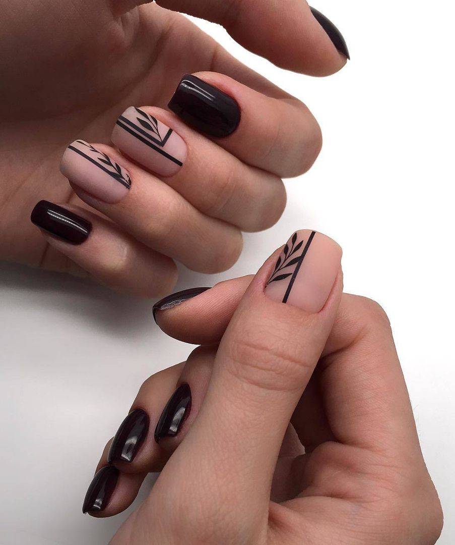 Абстракция красиво смотрится на матовой поверхности. Узоры лучше выполнять черным или другим темным гель-лаком. Так рисунок будет выглядеть выразительно и заметно. Абстракцию можно выполнить как вручную с помощью маникюрной кисти, так и использовать все разнообразие пластинок для стемпинга.