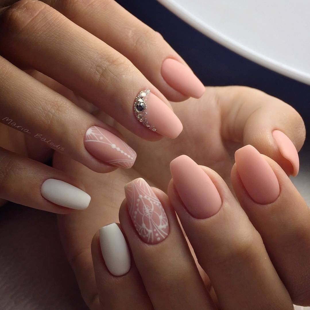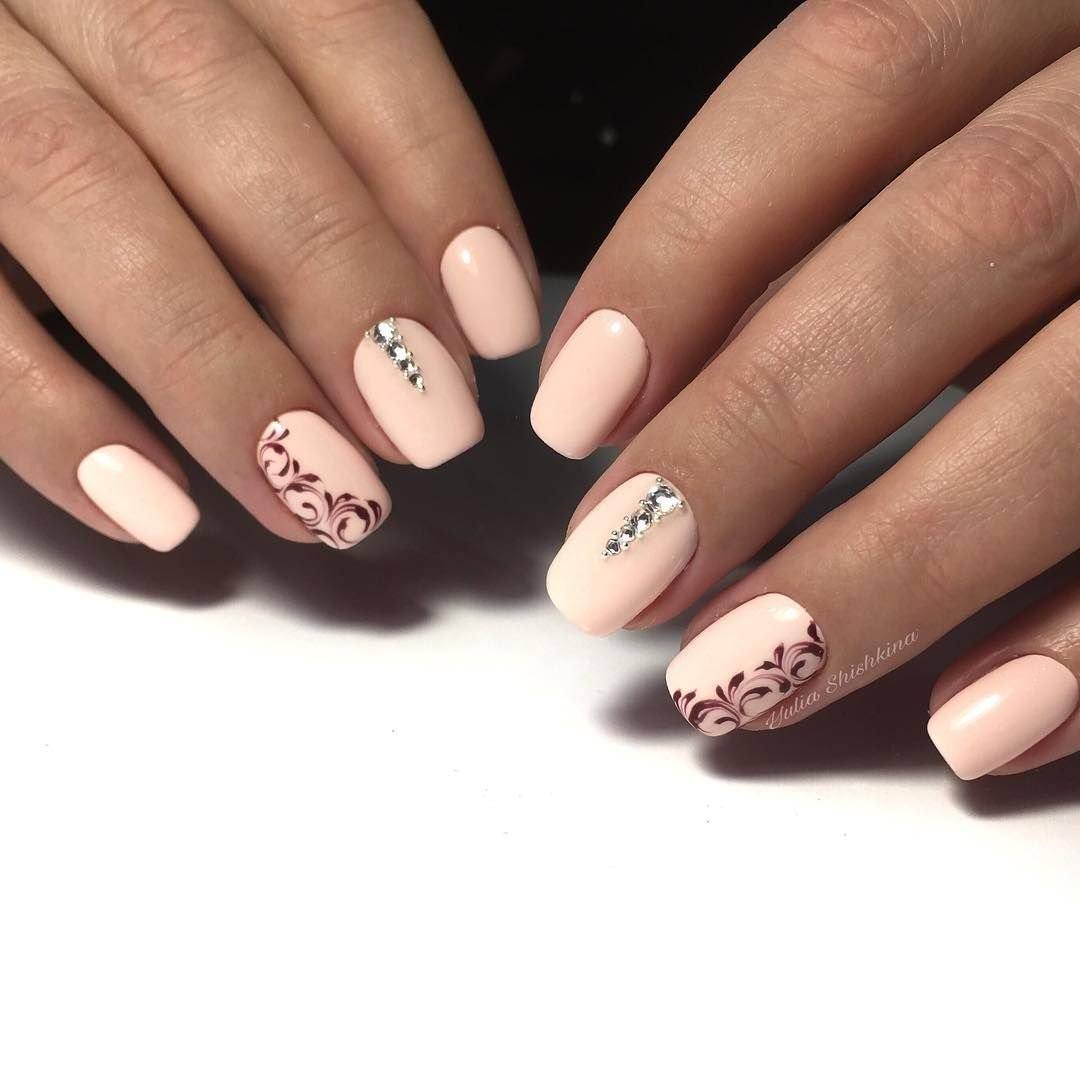 Красивый маникюр в сдержанных пастельных тонах можно украсить декором.