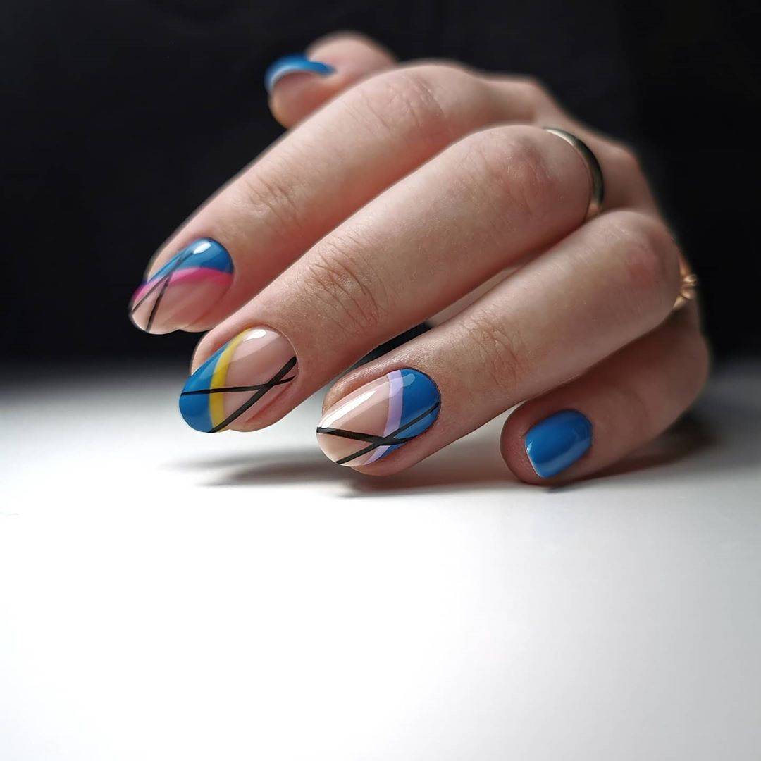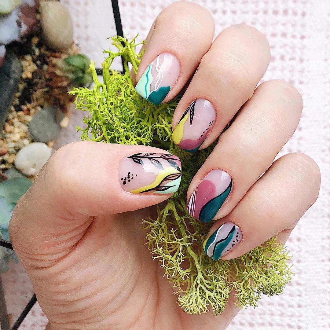 #2 Маникюр на короткие ногти с абстракцией 2020
