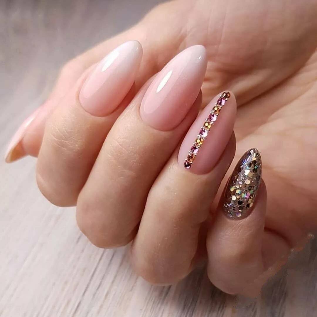 - Акцентирование декоративными элементами нескольких ногтевых пластин. Такой маникюр прекрасно подчеркнет вечерний образ. Только разбавлять рекомендуется в небольших количествах, так как пастельные тона не любят излишеств.