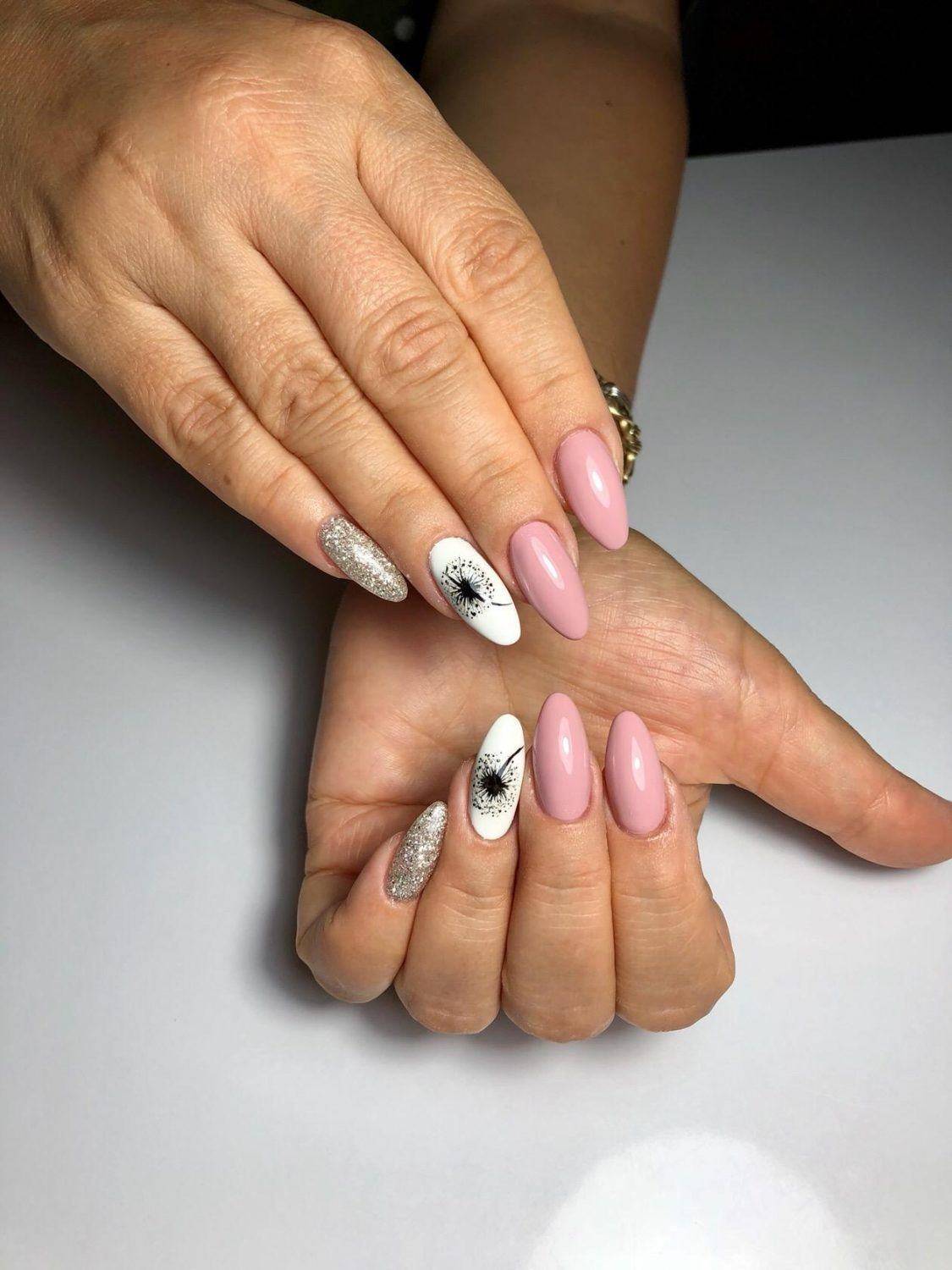 - Создание цветочной композиции моделирующим гелем. Это могут быть одуванчики – на сегодняшний день актуальное решение при украшении пастельного нейл-арта.