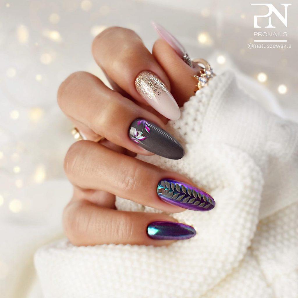 Что касается техник маникюра, то с фольгой великолепно выглядит: