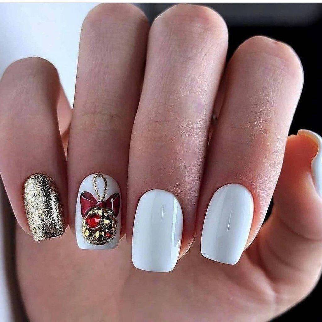 - 11 #5 Белый новогодний маникюр на короткие ногти 2020