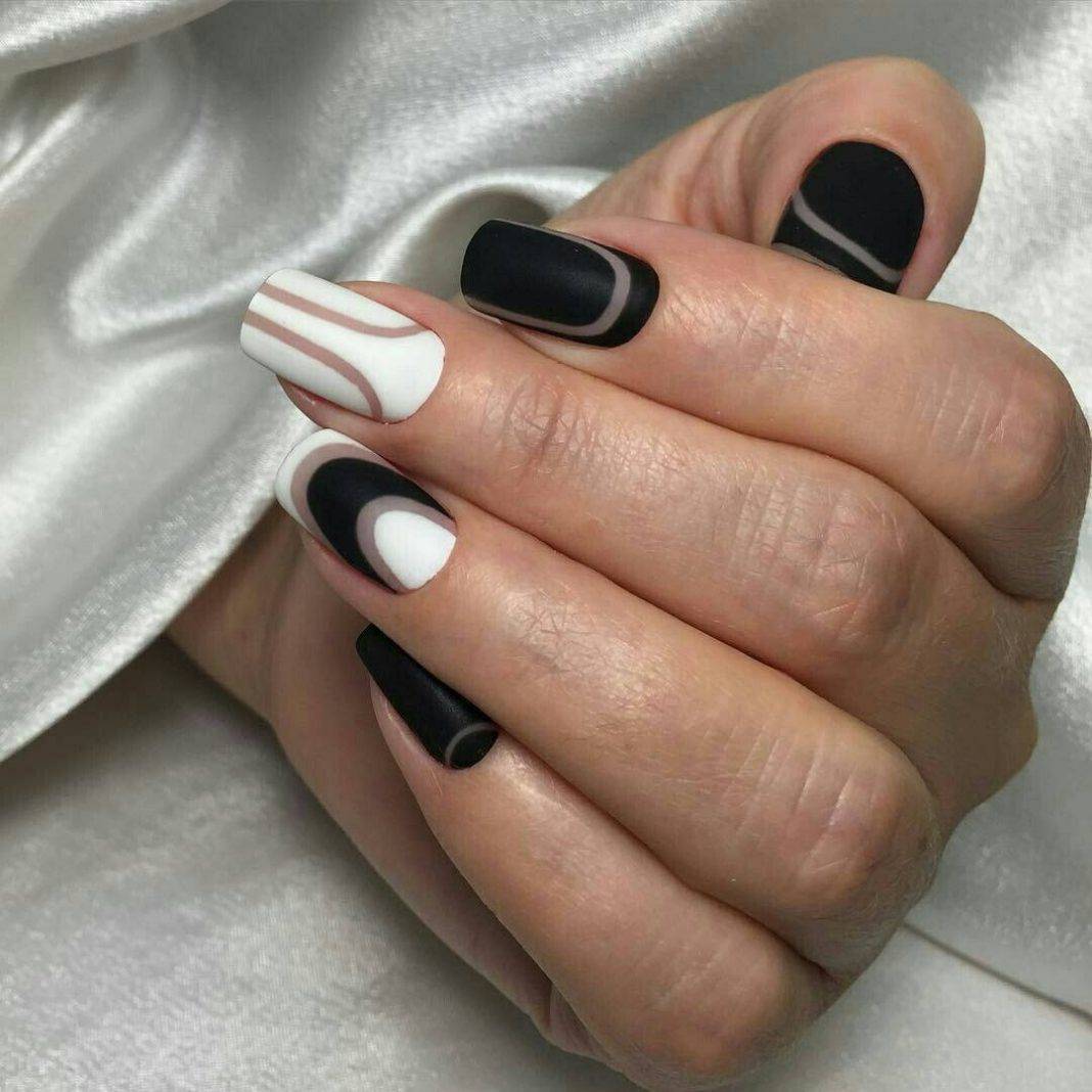 Сочетайте дизайн negative space c геометрическими узорами, хаотично расположенными блоками. Тренд весны-лета 2020 – маникюр в черно-белых тонах с негативным пространством. Используйте точки и полоски разной толщины, фигурки и мордочки животных, лапки, надписи в негативном оформлении.