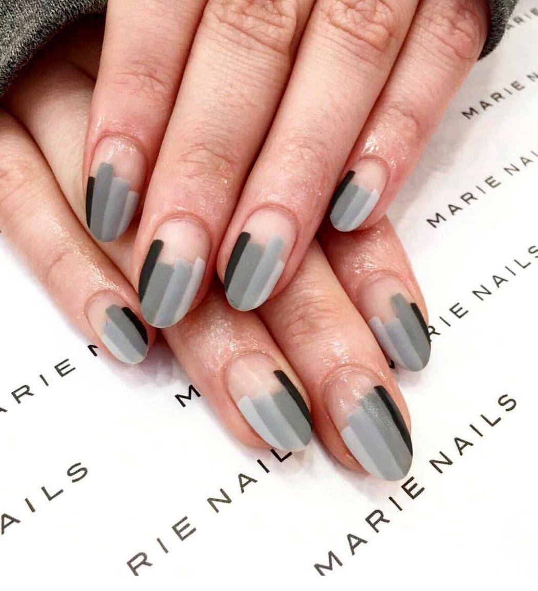 Но настоящим открытием следующего года будет линейный градиент, при котором цвета не смешиваются в местах перехода одного оттенка в другой, а наносятся идеально ровными полосками с четкими границами. При использовании специальной скотч-ленты, такое омбре получается аккуратным и стильным.