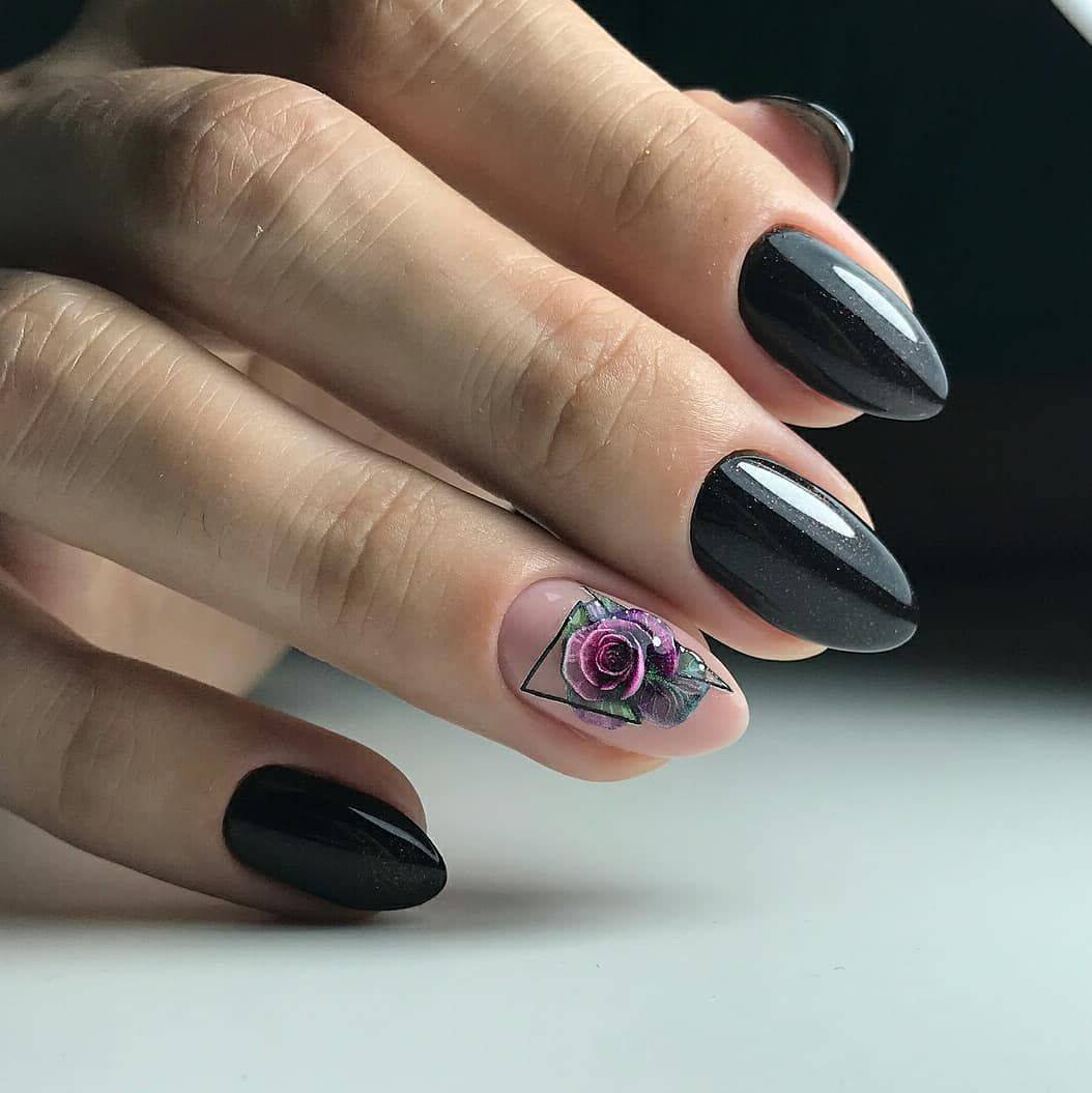 Отдельного внимания заслуживает весенний маникюр с цветами. Это исключительно сезонный дизайн, который великолепно выглядит на ноготках различной длины и формы. В тренде реалистичные изображения цветов, дополненные капельками росы из прозрачного топа. Великолепно выглядит дизайн в ахроматических тонах, например, основным черным тоном и черными цветами на прозрачном или пастельном фоне.