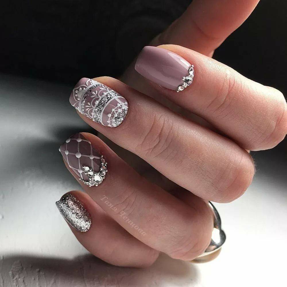 Сочетание достойно того, чтобы на него обратили внимание. Только посмотрите насколько нежно и женственно выглядят нейл-арты в серо-розовом цвете