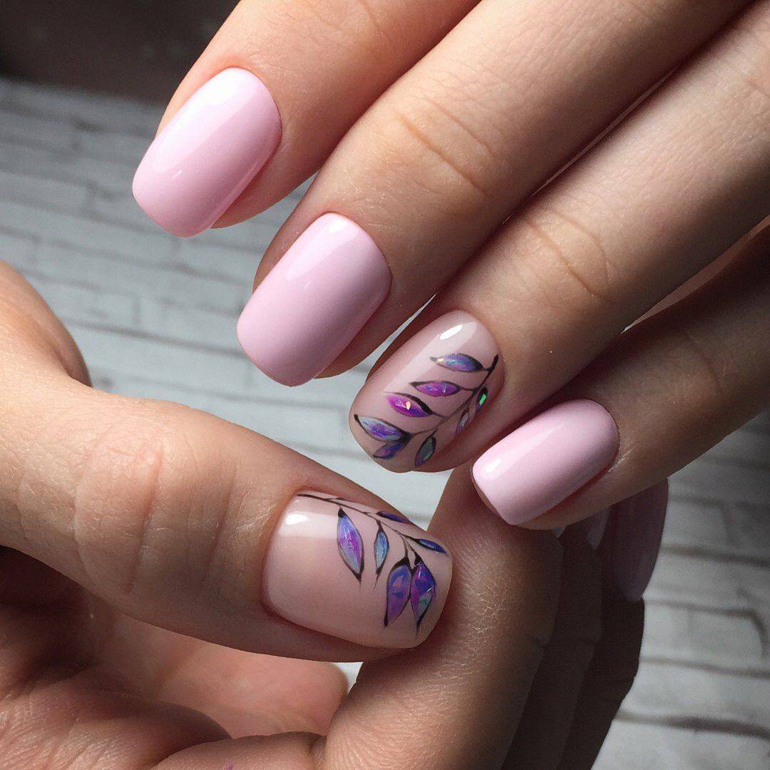 Нежно-розовый маникюр с дизайном на длинные, короткие ногти. Фото, новинки 2020