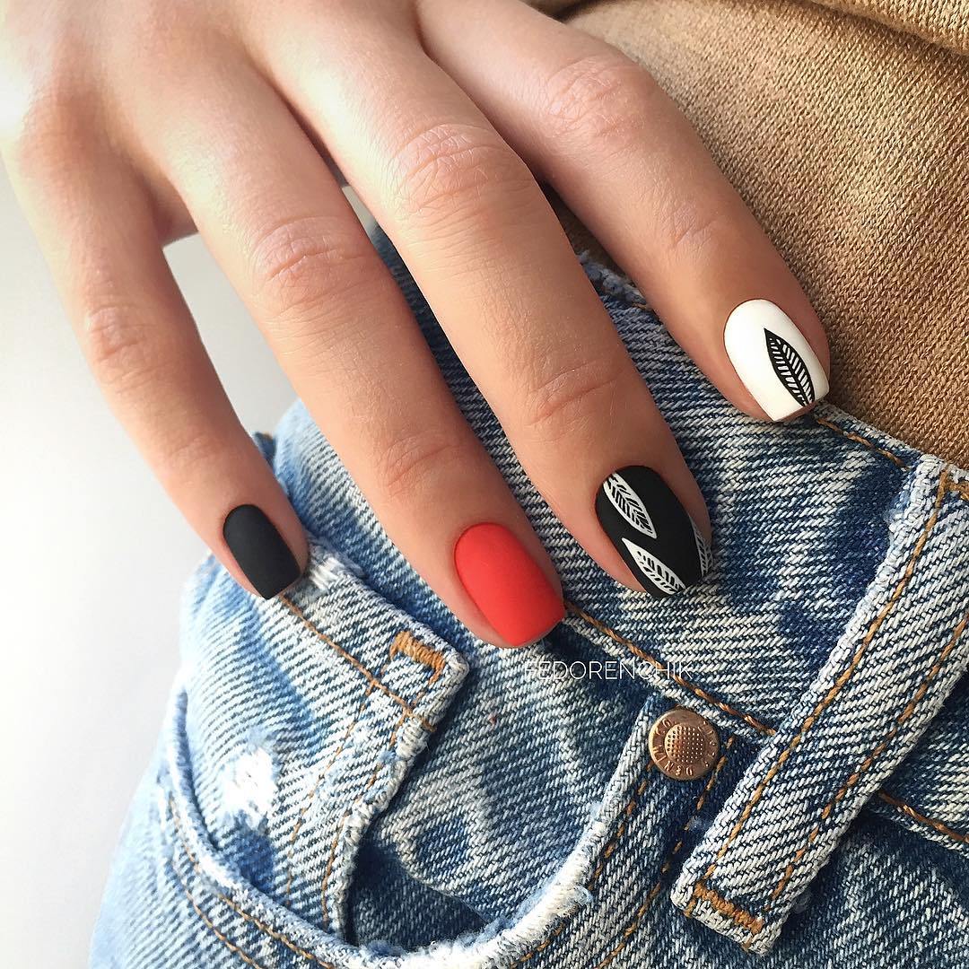 - сочетают матовый и глянцевый финиш для придания маникюру эффектности.