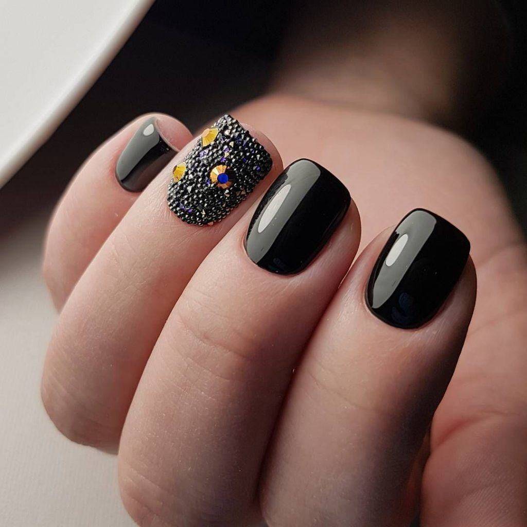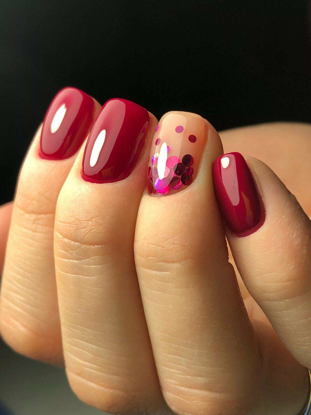 - используют стразы, блестки, роспись на акцентных ногтях;