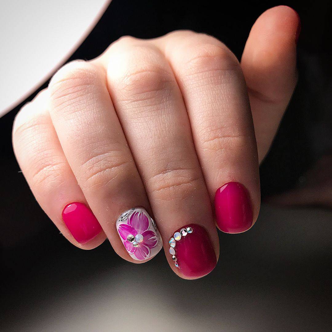 Розовый маникюр отлично выглядит в сочетании с белым, черным, фиолетовым и другими тонами. С этими сочетаниями можно создать стильный дизайн с геометрией, кружевом, акварелью.