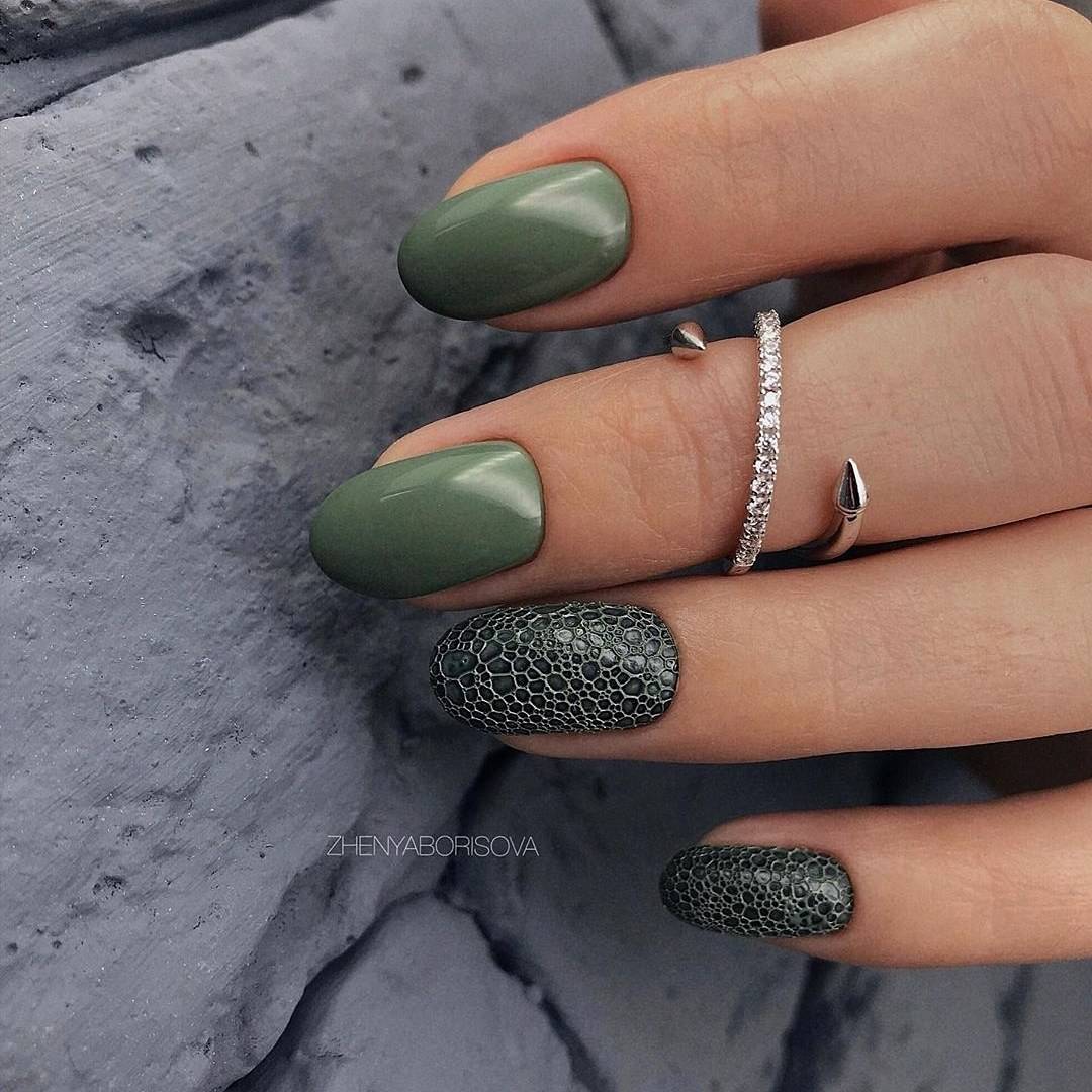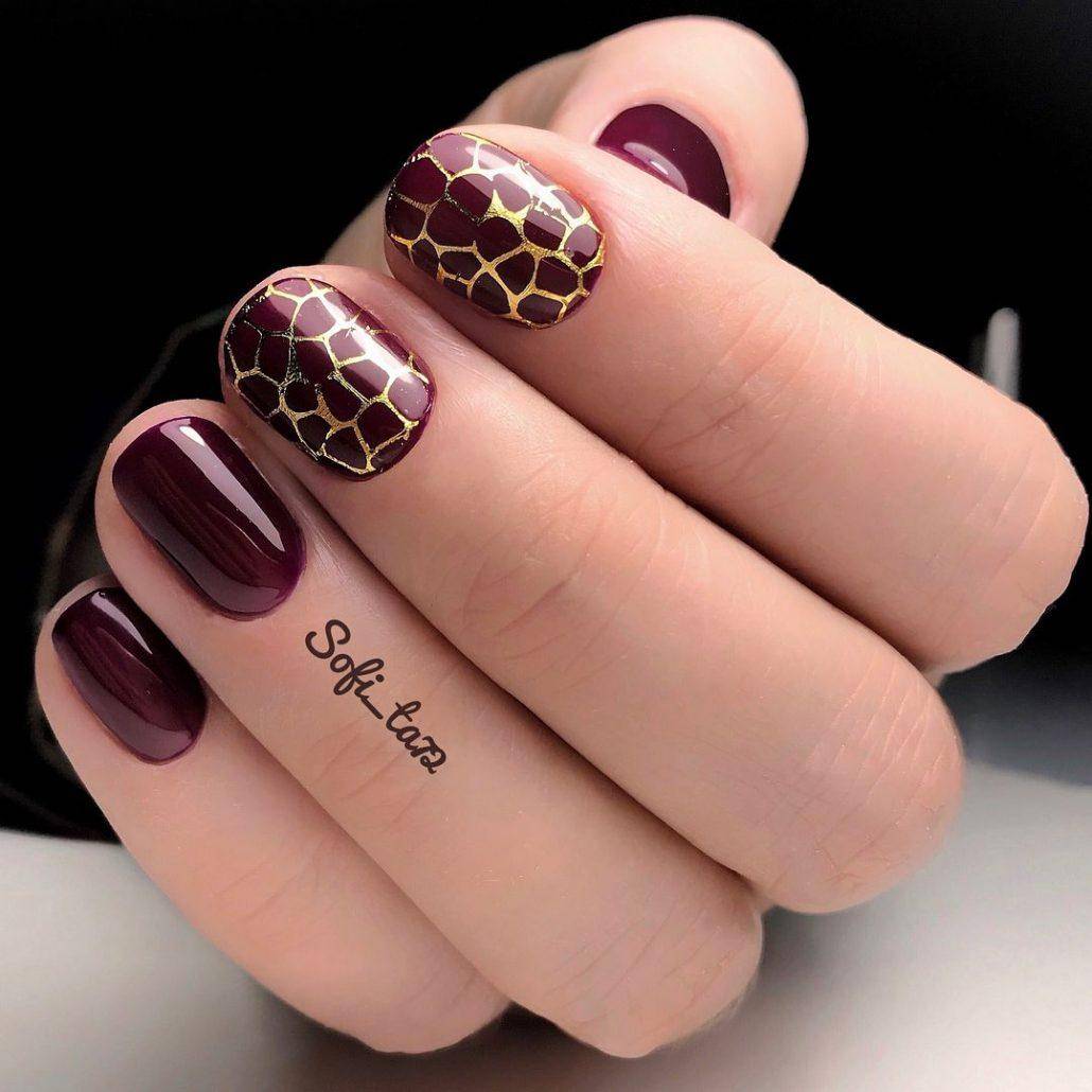 На самом деле надо обладать безупречным вкусом, чтобы использовать такой прием и идеально сочетать текстуры. В качестве эксперимента можно рассмотреть на своих руках дизайн вишневый с золотом или пастельным серым. Результат будет столь же необычным, сколь и потрясающим.