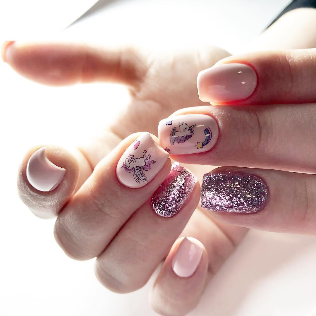 - 5 #6 Розовый маникюр с блестками 2020