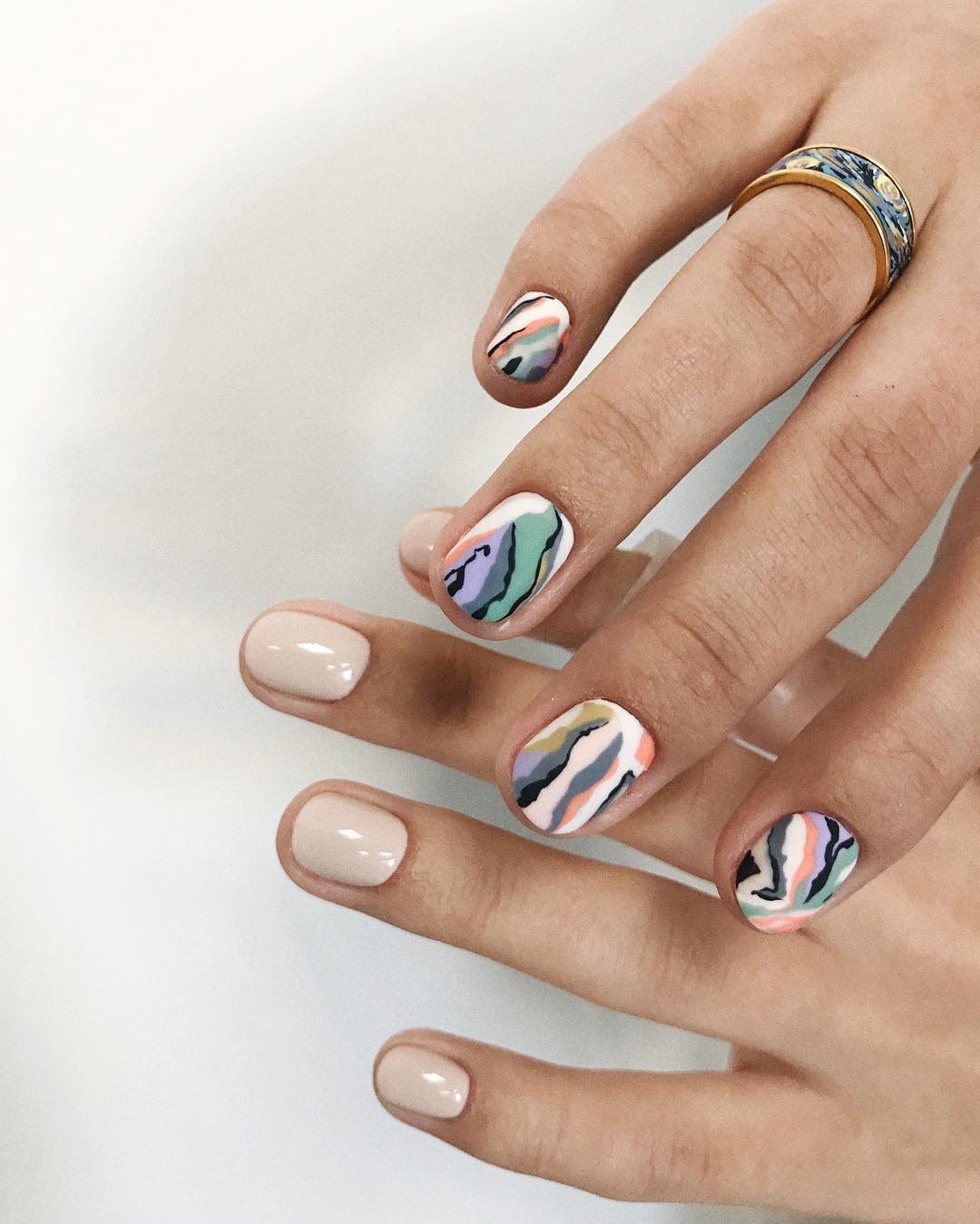 Маникюр «разные ручки» на весну