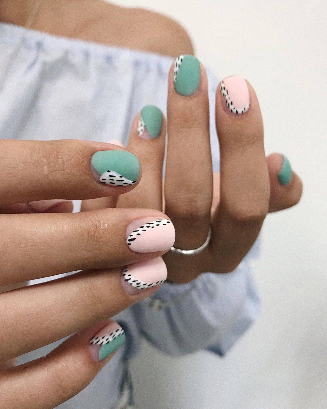 Утонченный весенний маникюр с точками