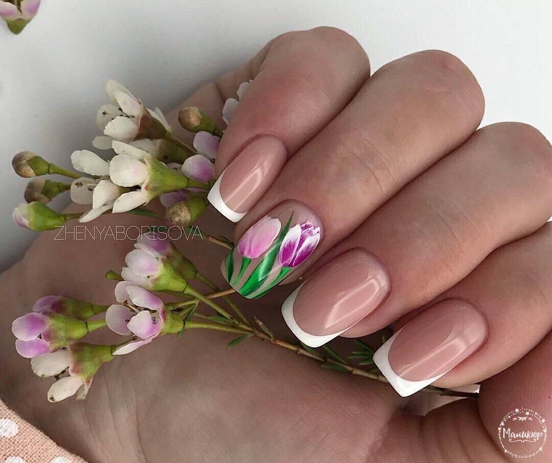 Разновидностей дизайнов с френчем бесконечное количество. Французский маникюр с рисунком даже на коротких ногтях будет смотреться волшебно, если добавить чуть-чуть креатива и фантазии.