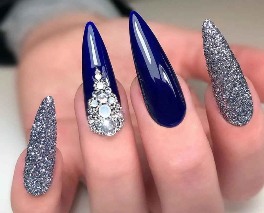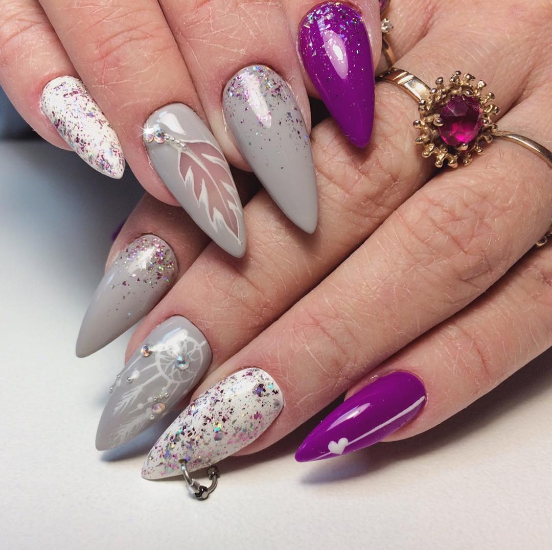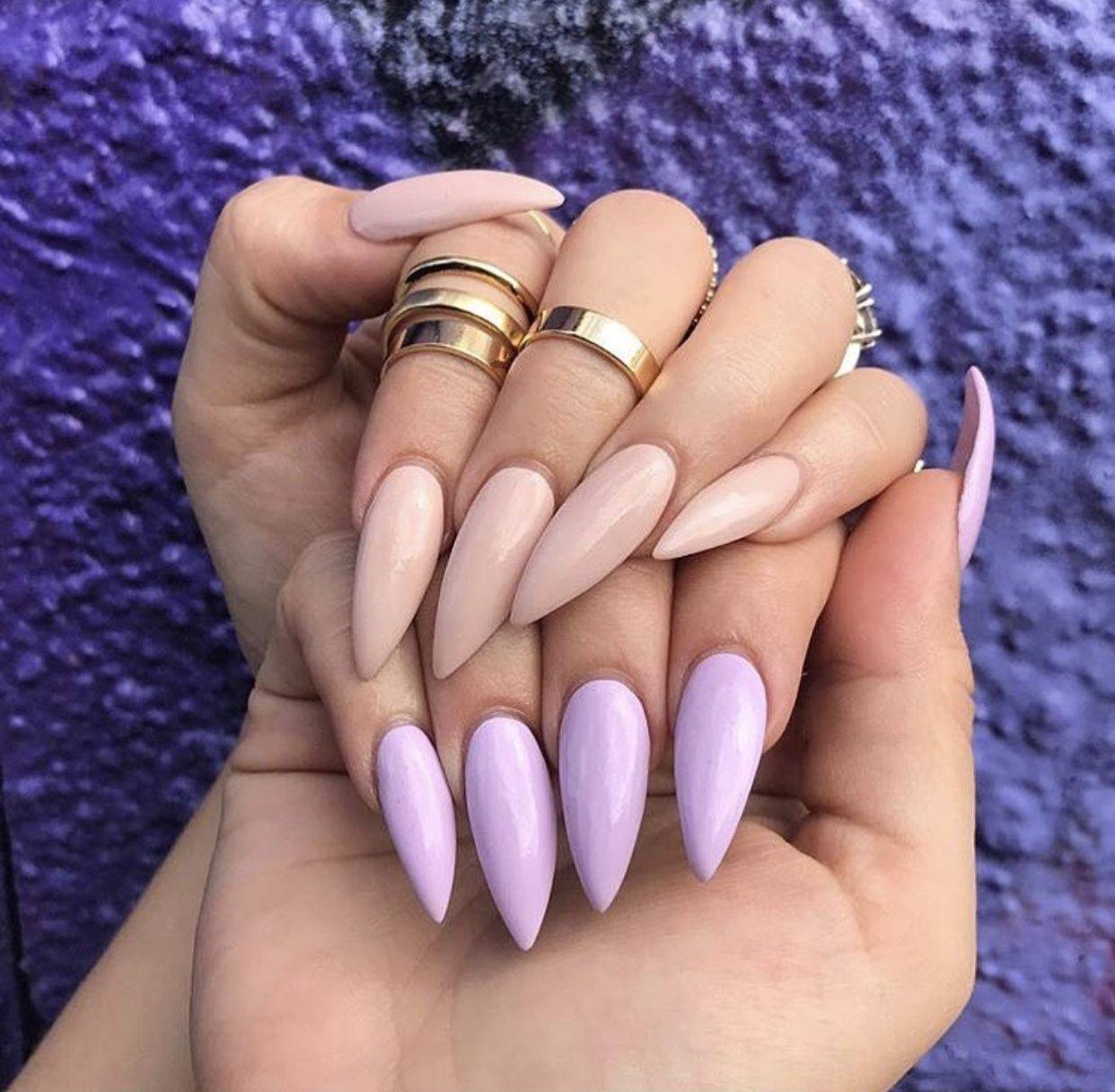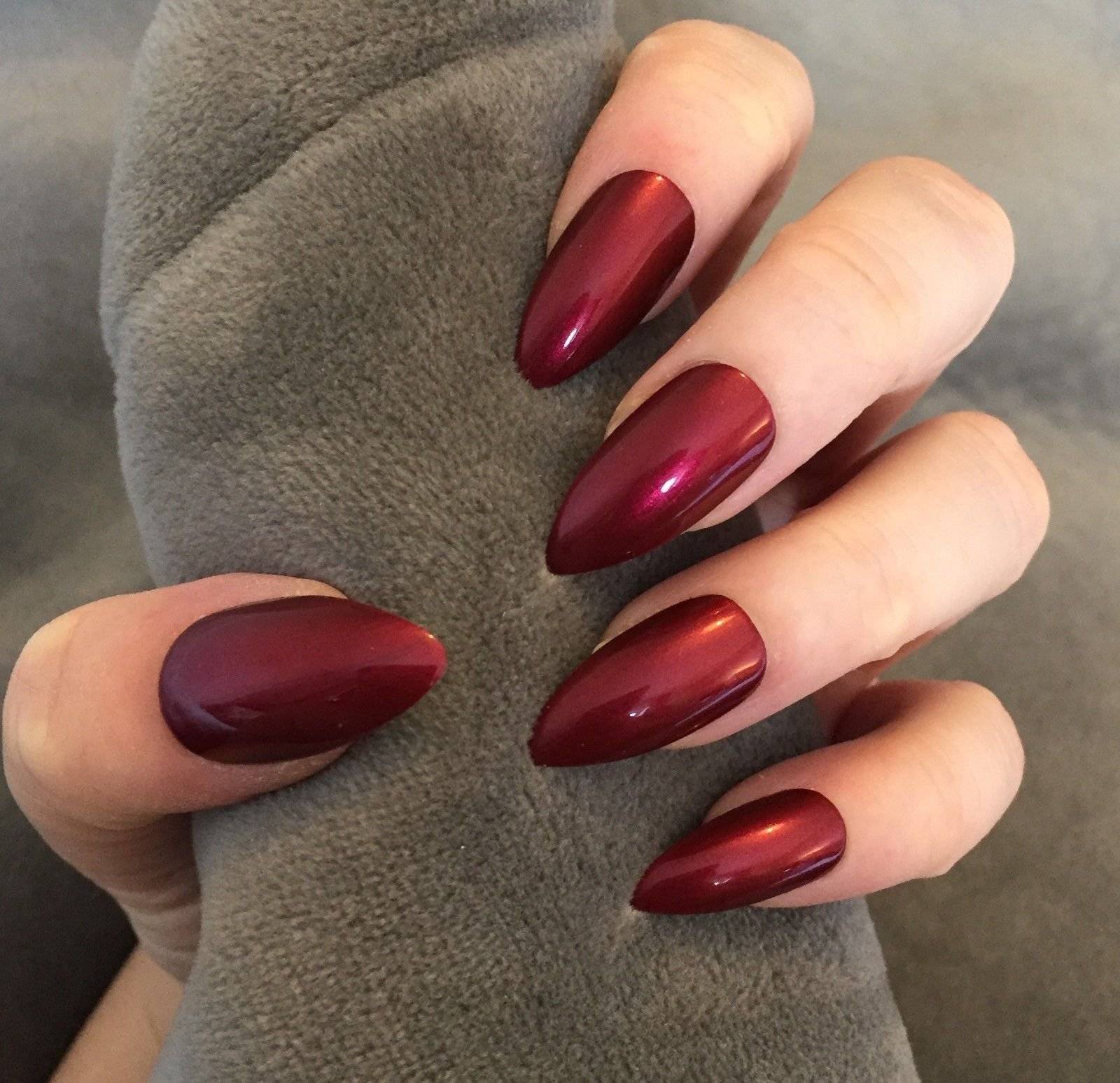 Еще одна разновидность миндалевидных ногтей – ногти-стиллеты. Они характеризуются более тонкими кончиками и значительной длиной. Такой маникюр не практичен, так как является хрупким. Но для праздника его вполне можно применить