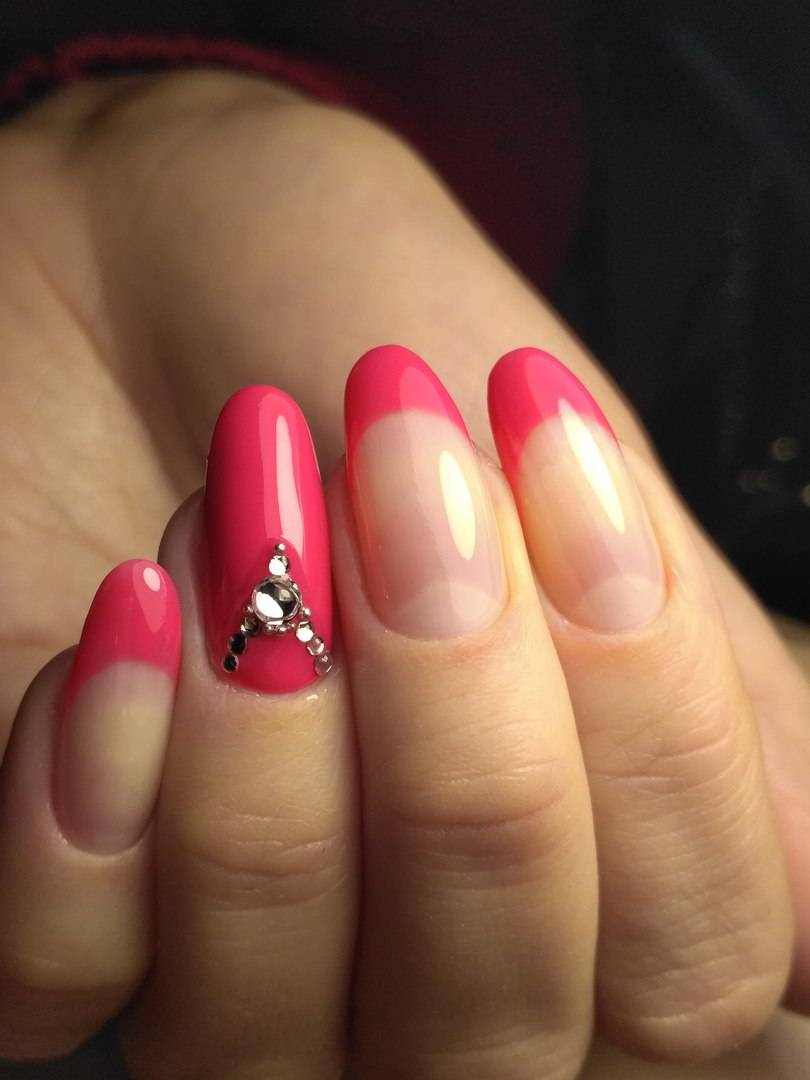 Обратите внимание: прозрачный фон подчеркивает недостатки ногтевой пластины. Самыми модными для фона сейчас считаются светлые холодные тона: все оттенки розового, винного, серого… Если вы хотите разнообразить маникюр, на помощь придет цветной френч — можете окрашивать линию улыбки в любой цвет даже для повседневного варианта