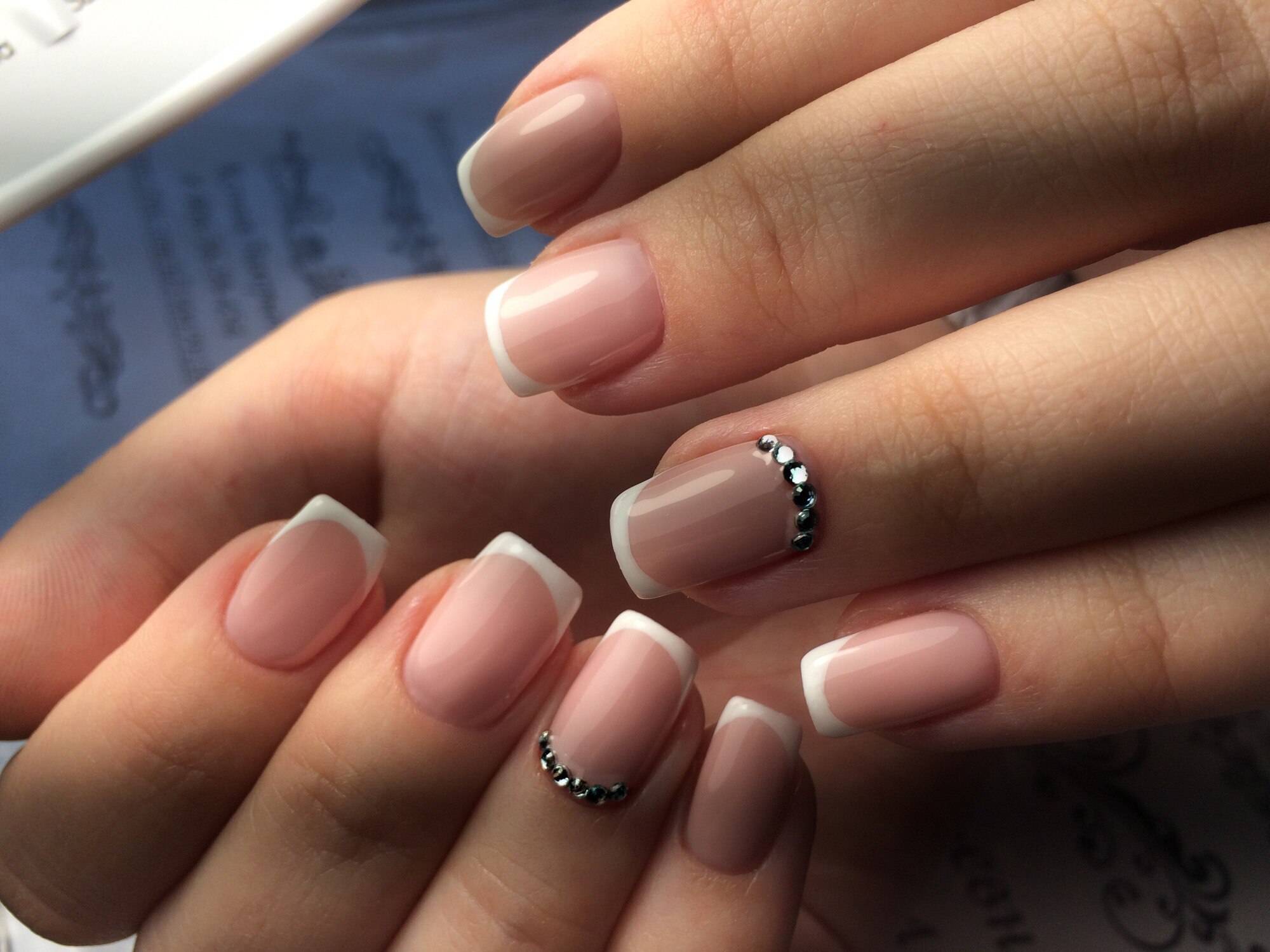 Это все, что нужно, если речь идет о классическом белом френче на прозрачном фоне без дополнительного декора – именно на примере такого дизайна легче всего учиться в домашних условиях.