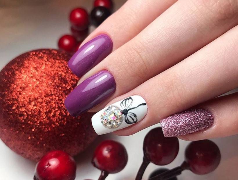 - 12 Фиолетовый маникюр со стразами 2020 фото