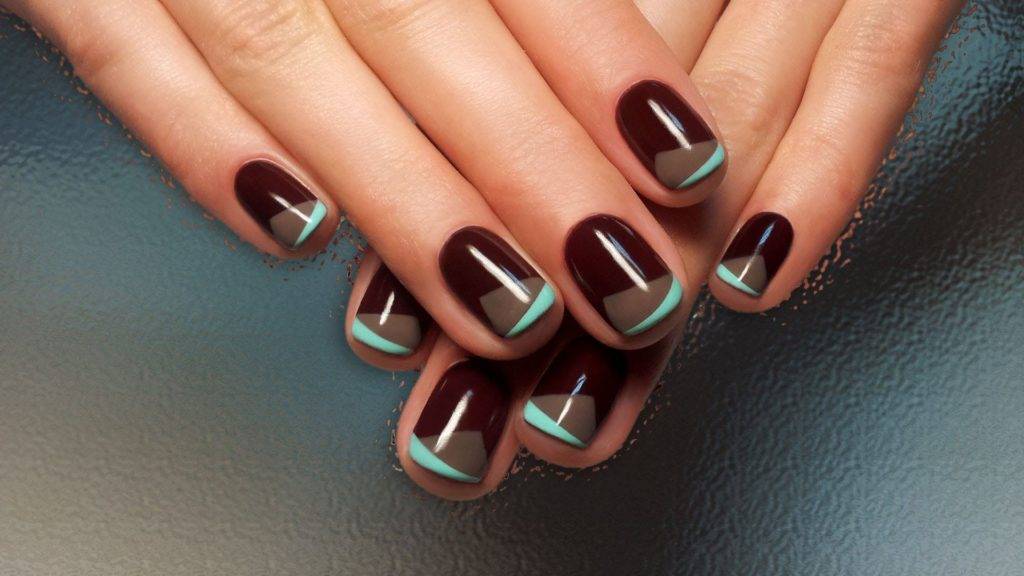 • Матовый шеллак – великолепное решение для девушек, чьей основной задачей является приведение ноготков к эстетически красивому и аккуратному внешнему виду. Молочный, пыльно-серый, блекло-желтый, ментоловый, небесно-голубой, малахитовый оттенки вполне хорошо смотрятся на ногтях в обособленном однотонном виде, безо всяких излишеств и дополнений.• Глянцевый гель-лак – на коротких ногтях очень хороши блеск и гладь насыщенных пигментированных тонов. Сюда можно отнести цвет опал, глубокий фиолет, розовый ярко-выраженный пурпур, горький шоколад, кофейный, золотистый и серебряный блестящий оттенки. Примечательно, что броскость и без того акцентированного цвета не стоит дополнять другими яркими элементами декорирования. Достаточно выполнить маникюр в технике обратного френча с оставлением зоны лунулы в первозданном прозрачном виде или отметив ее вписывающимся в общую композицию оттенком. Этого вполне хватит для того, чтобы с подобным дизайном можно было выделиться элегантностью на работе, в офисе или же на шумной вечеринке в местном клубе или баре. Эффект в любом случае будет привлекателен и ярко выражен.• Комбинация глянцевого и матового гель-лака или шеллака – по-прежнему модно применять попеременно разные консистенции базового и декоративного покрытия. Так, великолепно смотрится черный френч на фоне глубокого мата базы с блестящим глянцем угольно-черных улыбок по краю пластины. Не менее привлекателен глянцевый опаловый абстрактный узор на глубоком бархатном базовом покрытии в таком же броском цвете бордо. Здесь мастер может импровизировать с комбинациями основы и декораций – в любом случае результат будет достойным.