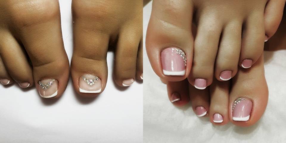 Кстати, дизайн ногтей на ногах со стразами, фото которых вы видите – это еще одна модная тенденция текущего года. Чаще всего девушки отдают предпочтение такому педикюру летом, когда приходит пора щеголять в изящных модельных босоножках. Но зимние сапоги – не повод отказываться от роскоши. Обратная сторона камушка плоская, поэтому он надежно крепится к ногтевой пластине.