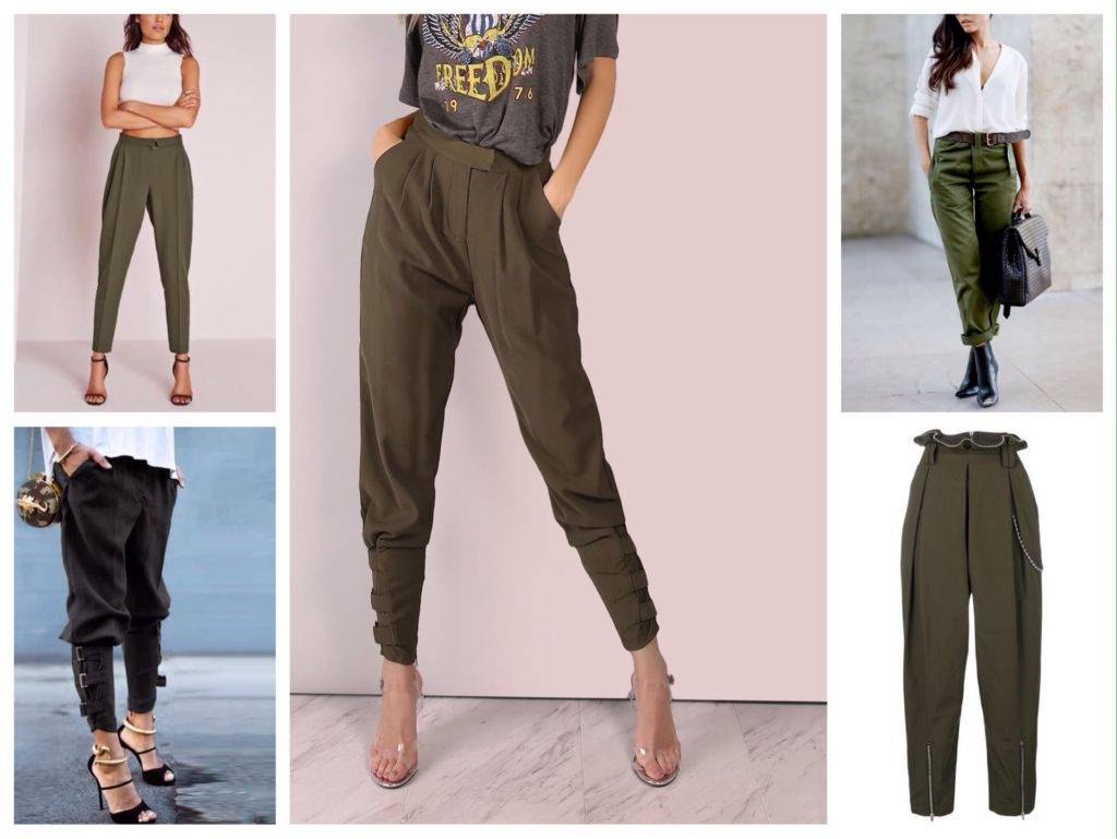 Галифе с характерным оттенком милитари удачно сочетаются с высокой посадкой. Сделать изделие более женственным призваны складки, драпировка, присобранные боковые швы. Дизайнеры не устают удивлять модниц и предлагают даже галифе с запахом и узким нижним краем.