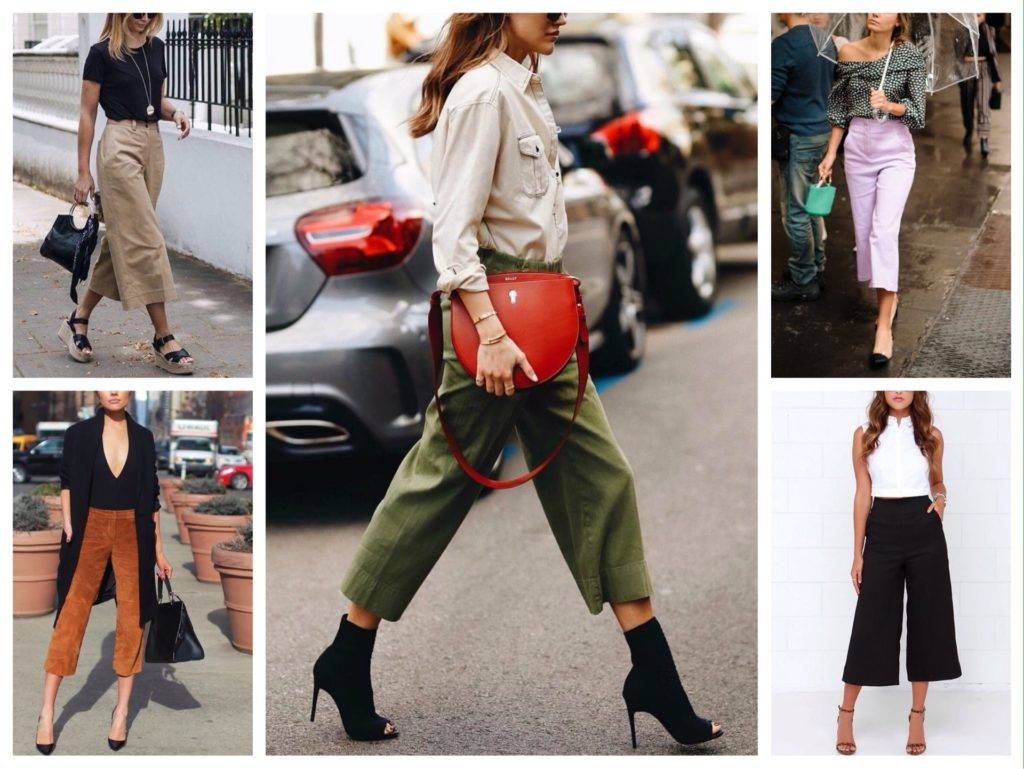Кюлоты находятся в списке модных брюк второй сезон подряд. Широкие штаны с высокой посадкой и укороченными брючинами идеально подходят для лета. Правда, такой вариант может оказаться неприемлемым для коренастых женщин. В этом случае выручат свободные брюки длиной макси.