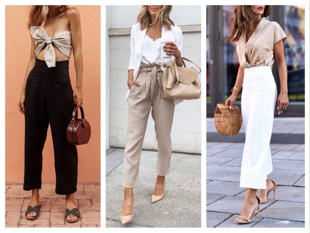 Акцентируя внимание на этой части фигуры, они делают ее визуально стройнее. Если правильно подобрать, с чем носить укороченные брюки, имеющие высокую линию талии, то можно выгодно подчеркнуть бюст