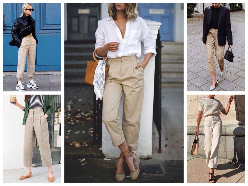 Зауженные брюки чинос носят со свитерами оверсайз, свободными блузами, майками. Штаны тем и хороши, что предоставляют девушкам возможность экспериментировать и миксовать одежду. Отлично чиносы смотрятся в многослойных комплектах.