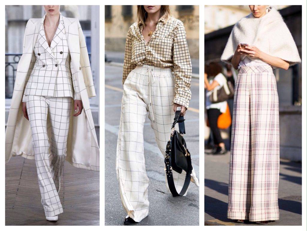 Речь идет о длине 7/8 или до щиколотки. Такие брюки – это тренд сезона, в коллекциях дизайнеров встречаются в различном исполнении: крупная или мелкая клетка, контрастное сочетание оттенков.