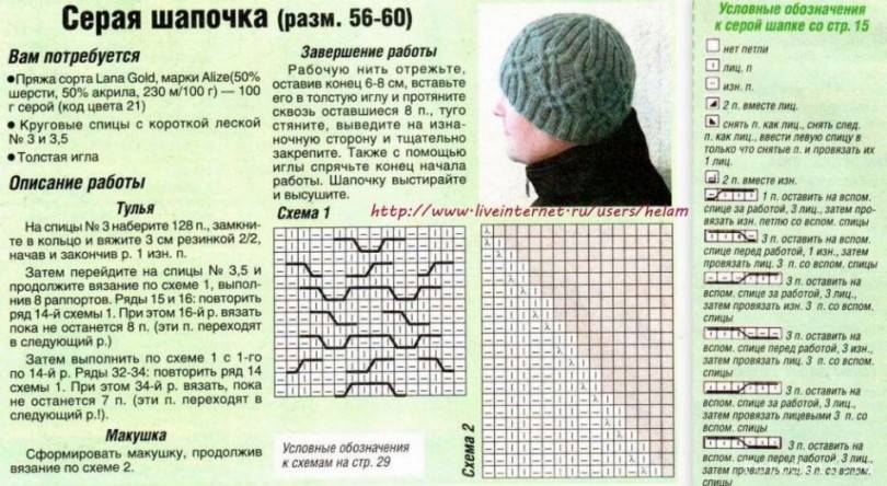 - 16 Вязаная шапка спицами: схема и описание узоров для начинающих