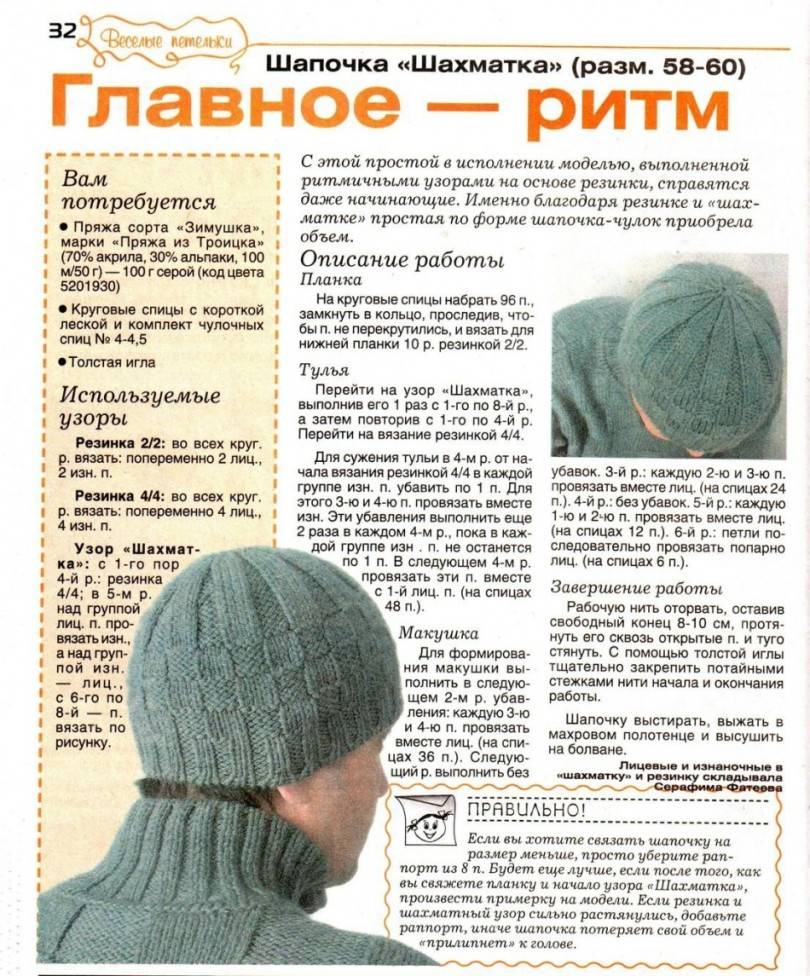 Вязаная шапка спицами: схема и описание узоров для начинающих