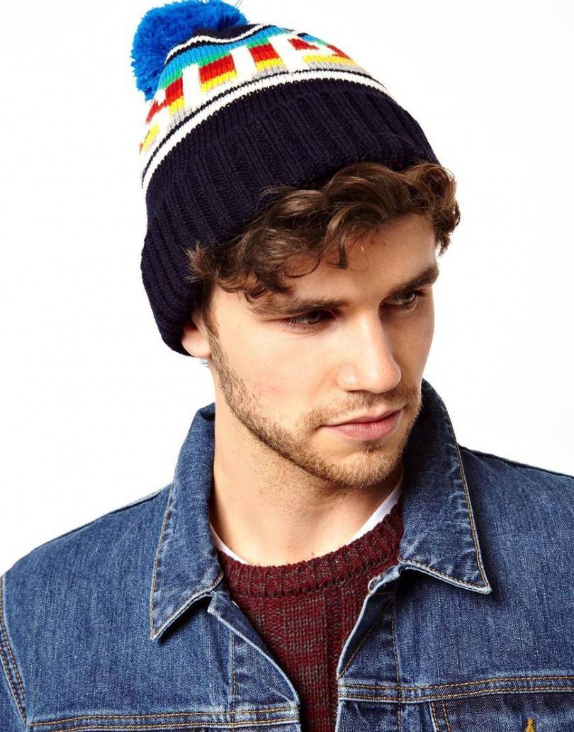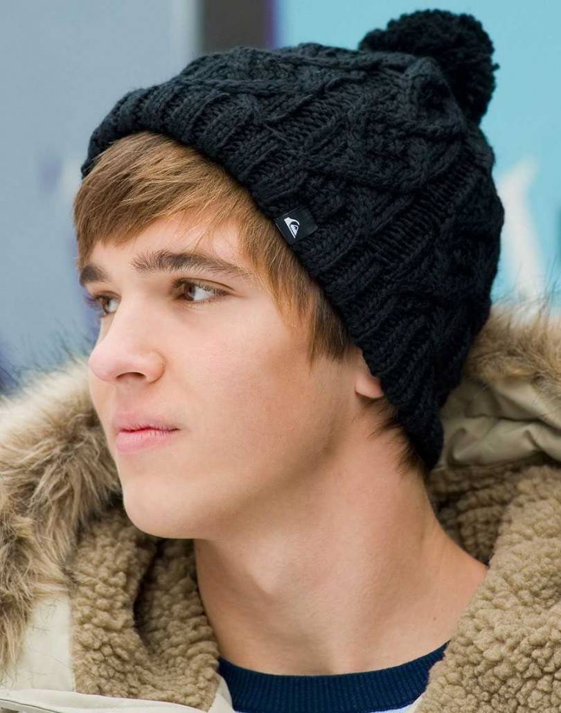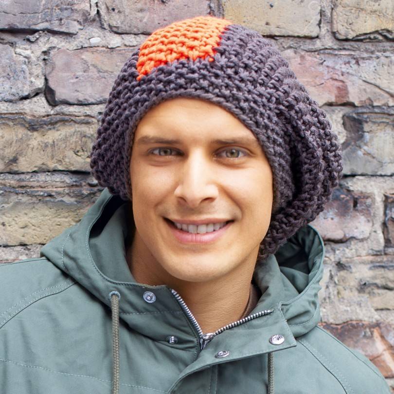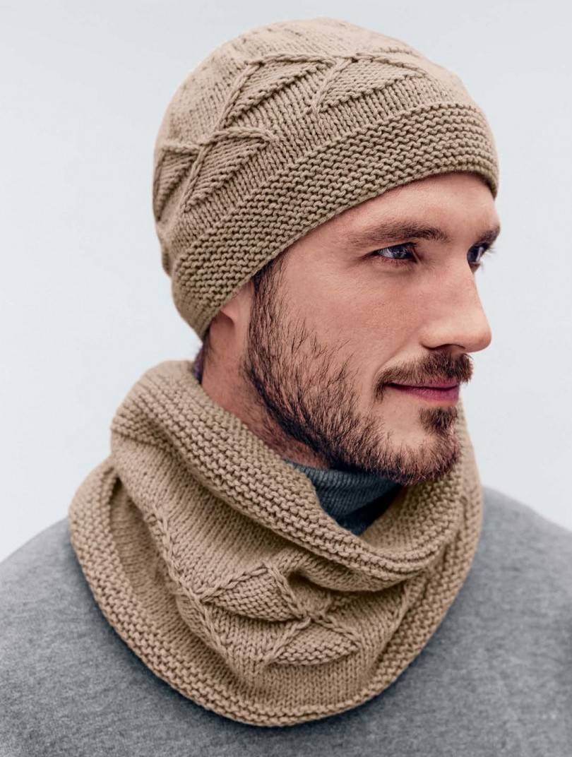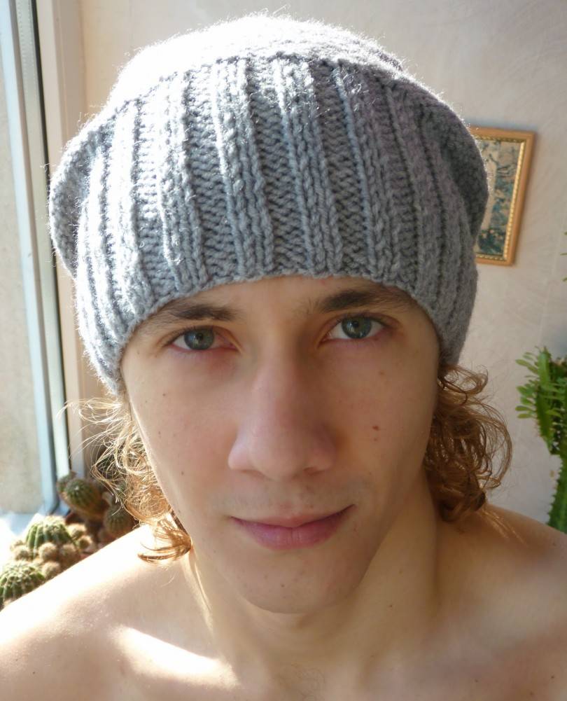 Классическая, стильная вязаная шапчонка вяжется по очень нетрудному мотиву. Парень в такой шапке будет выглядеть по-настоящему шикарно.