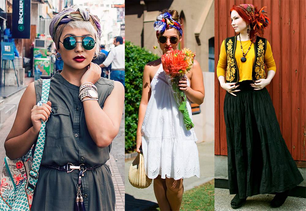 Летом практически любой женский образ можно дополнить платочком. Тонкие летящие шарфики красиво смотрятся, вплетёнными в косу, в виде тюрбана или декоративной повязки с бантиком «Солоха». На прохладное лето идеально подходят универсальный голливудский и «бабушкин» способ.
