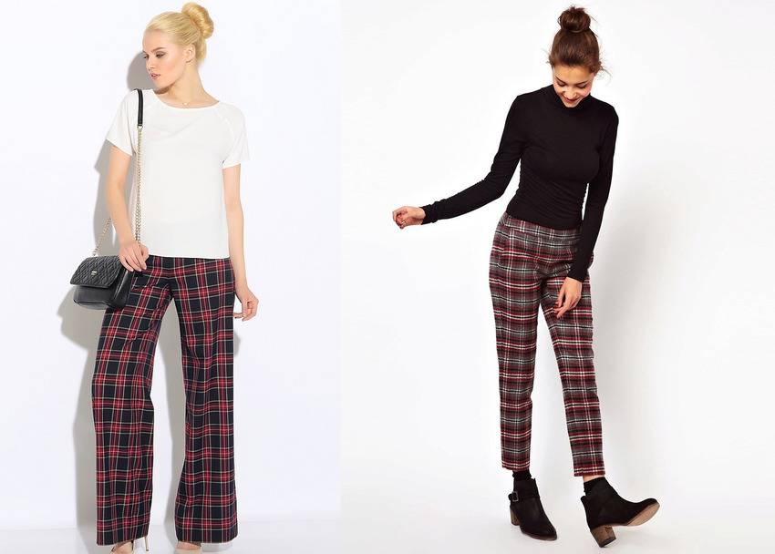 Что касается возрастной категории, контрастные расцветки подойдут подросткам, а вот женщинам постарше стоит обратить внимание на более приглушенные тона и не слишком ярко выраженный принт. Если девушки могут смело экспериментировать и к ярким клетчатым штанам подбирать молодежный вариант рубашки или футболки смелых цветов, то дамам 40+ лучше обойтись однотонной блузой или пуловером